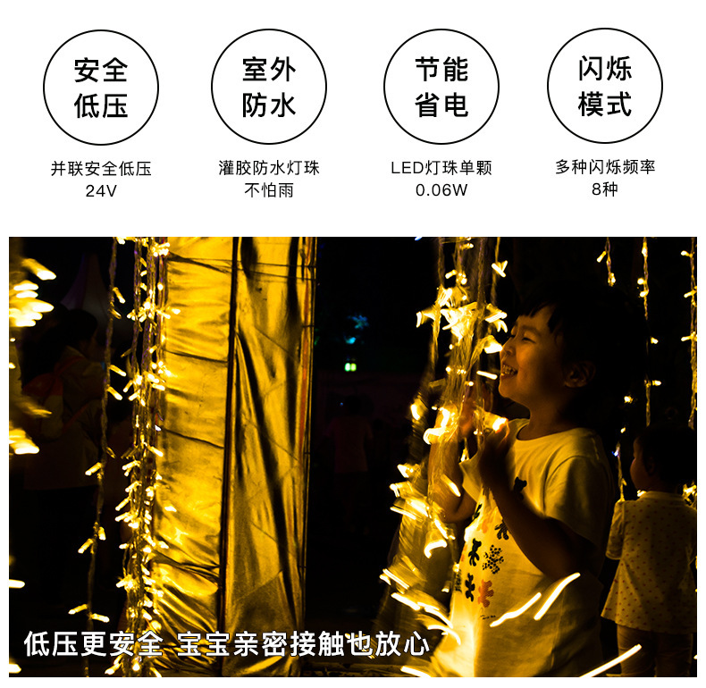 24V 저전압 안개꽃 LED 빛 문자열 안뜰 나무 장식 깜박이는 빛 야외 프로젝트 조명 방수 교수형 나무 빛