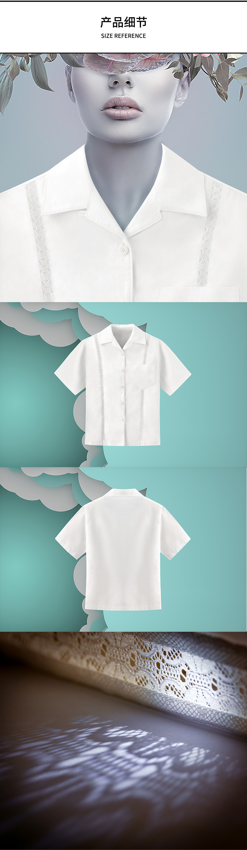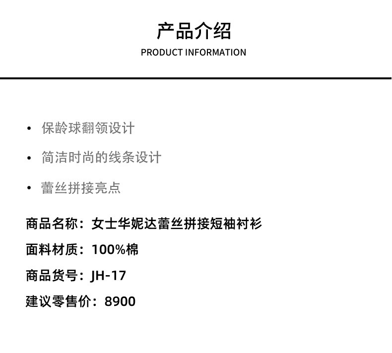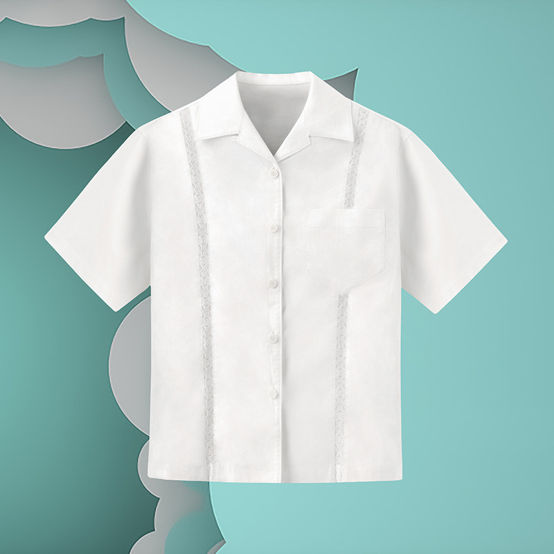 【JH-17】2024 봄/여름 여성용 화니다 레이스 스티치 반팔 셔츠