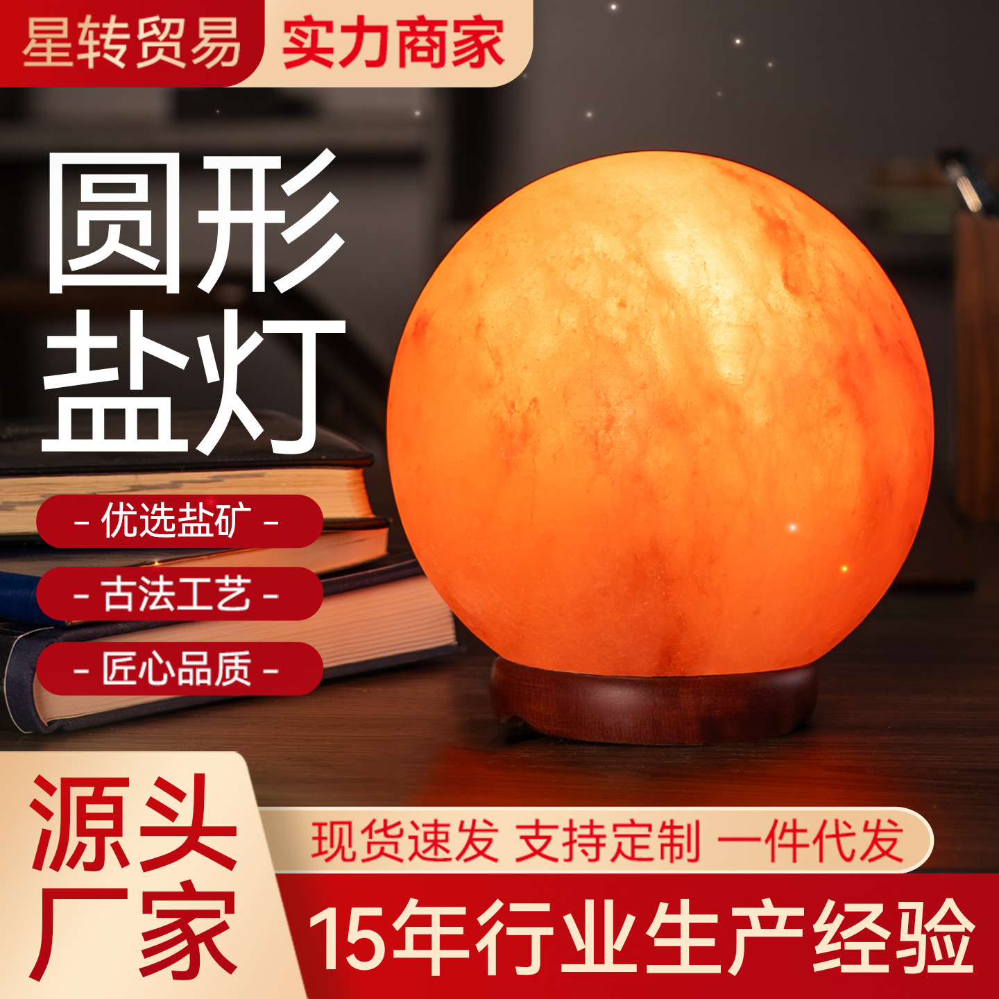 히말라야 원형 미네랄 크리스탈 소금 램프 달 모양 테이블 램프 장식품 침실 분위기 조명 야간등스토어 가기