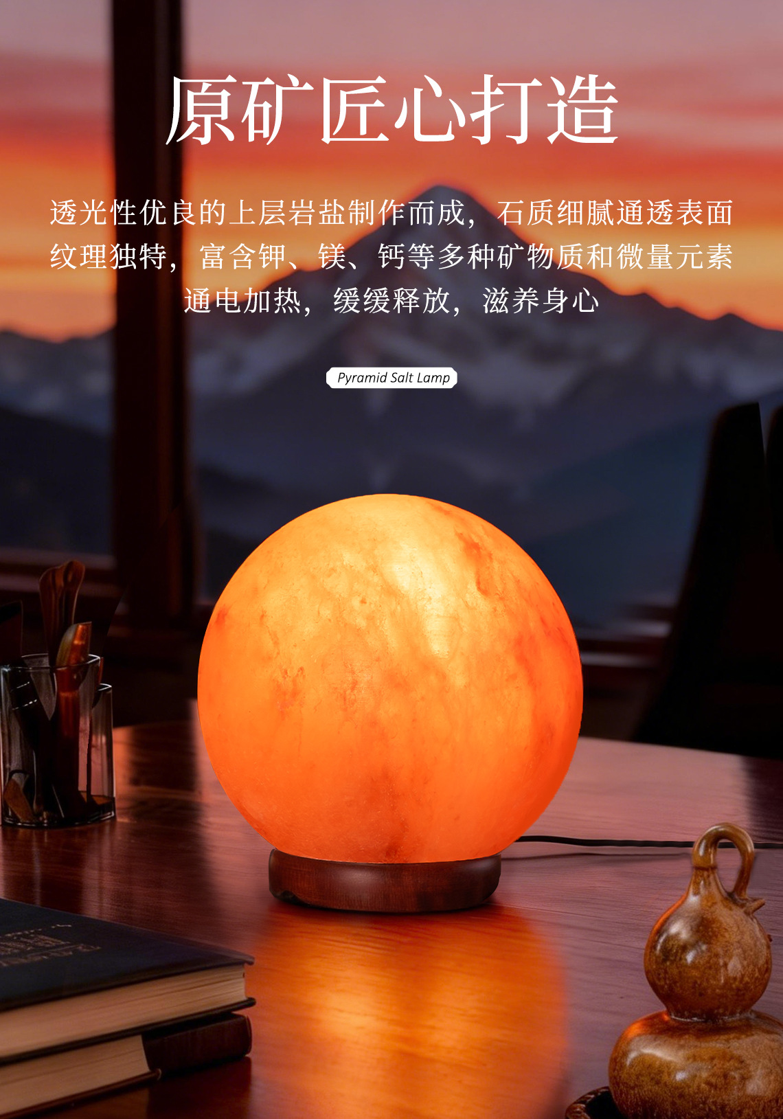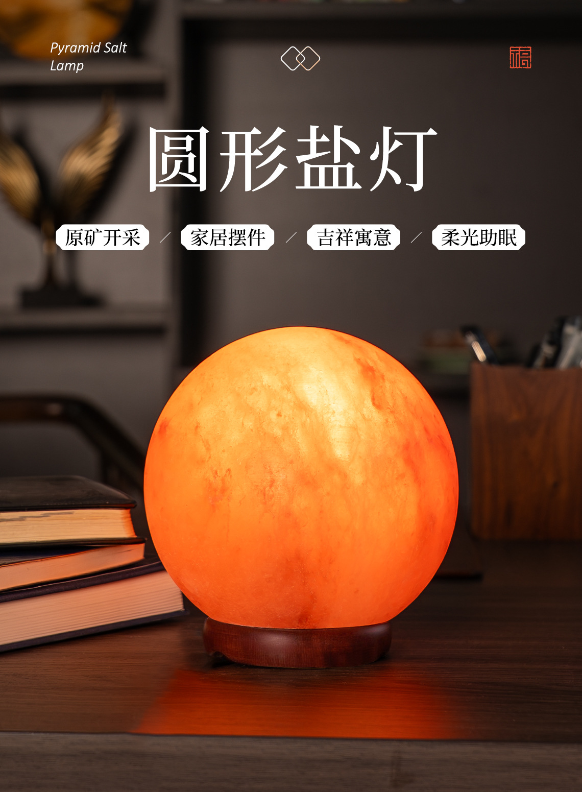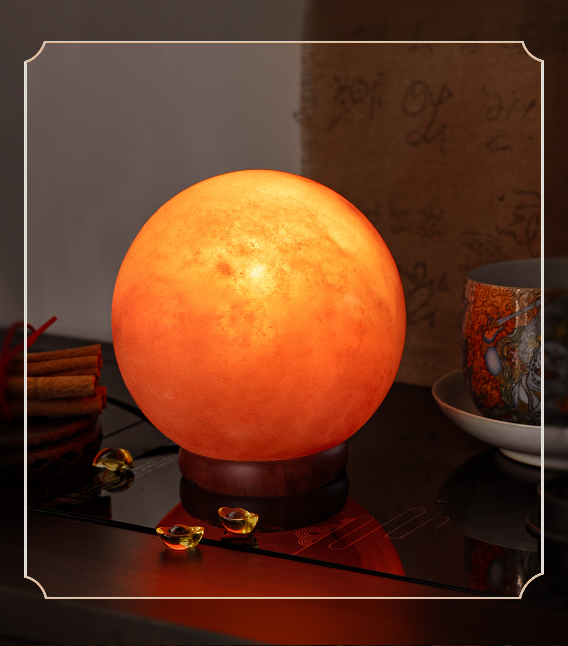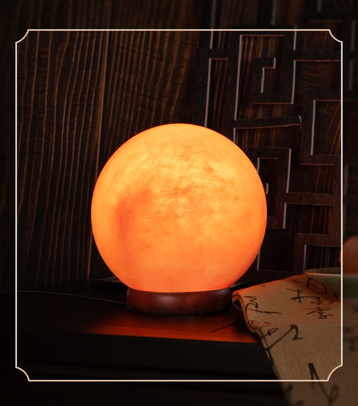 히말라야 원형 미네랄 크리스탈 소금 램프 달 모양 테이블 램프 장식품 침실 분위기 조명 야간등