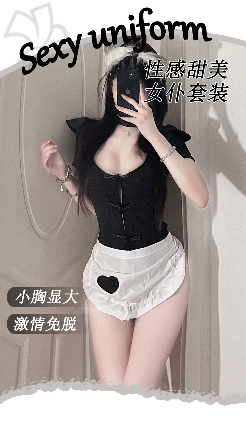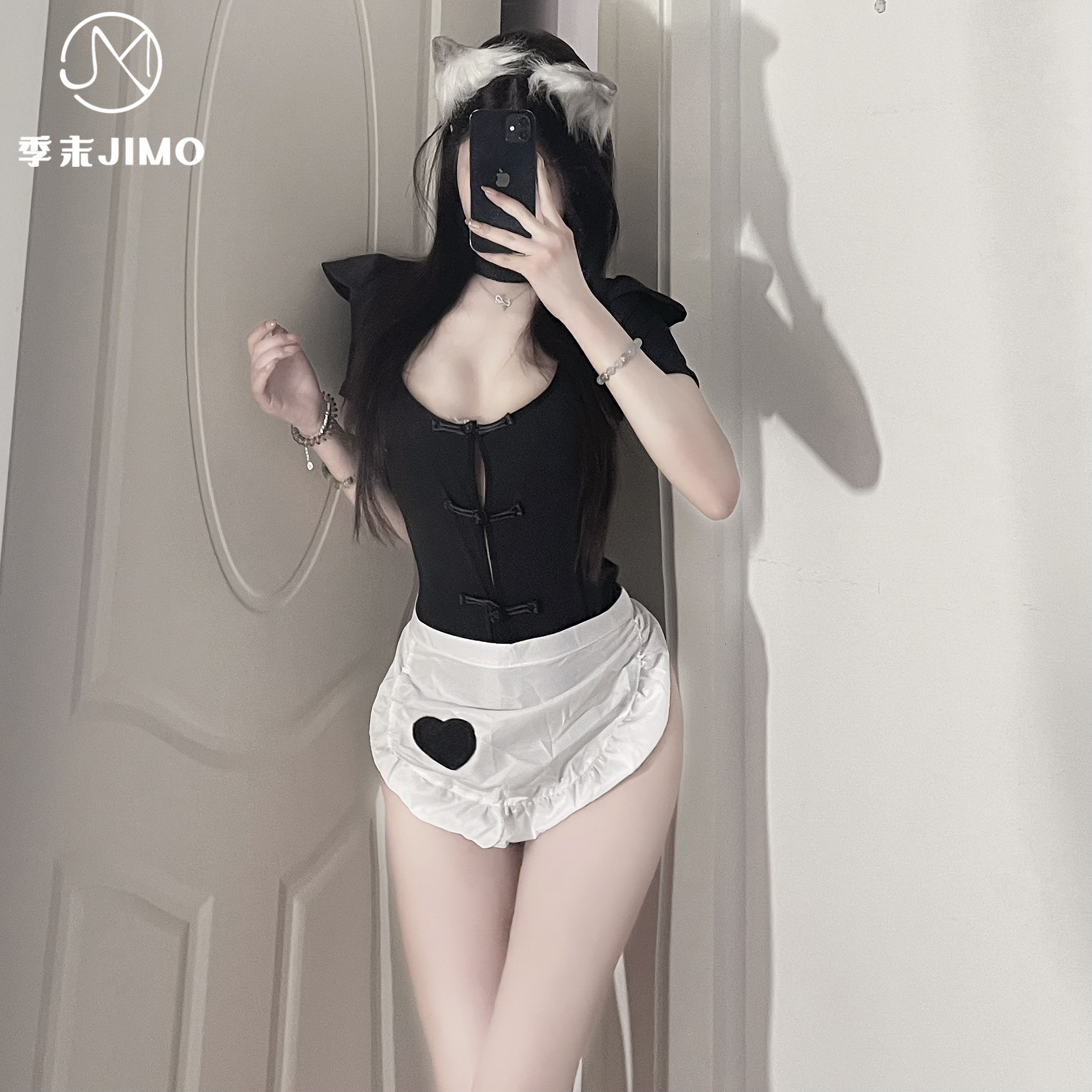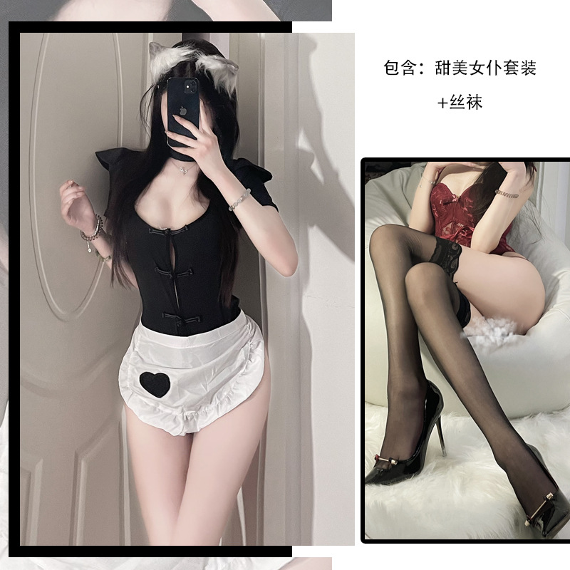 섹시한 달콤한 하녀 유혹 섹시한 속옷 열정 중공 역할 놀이 원피스 세트 뜨거운 하녀 의류스토어 가기