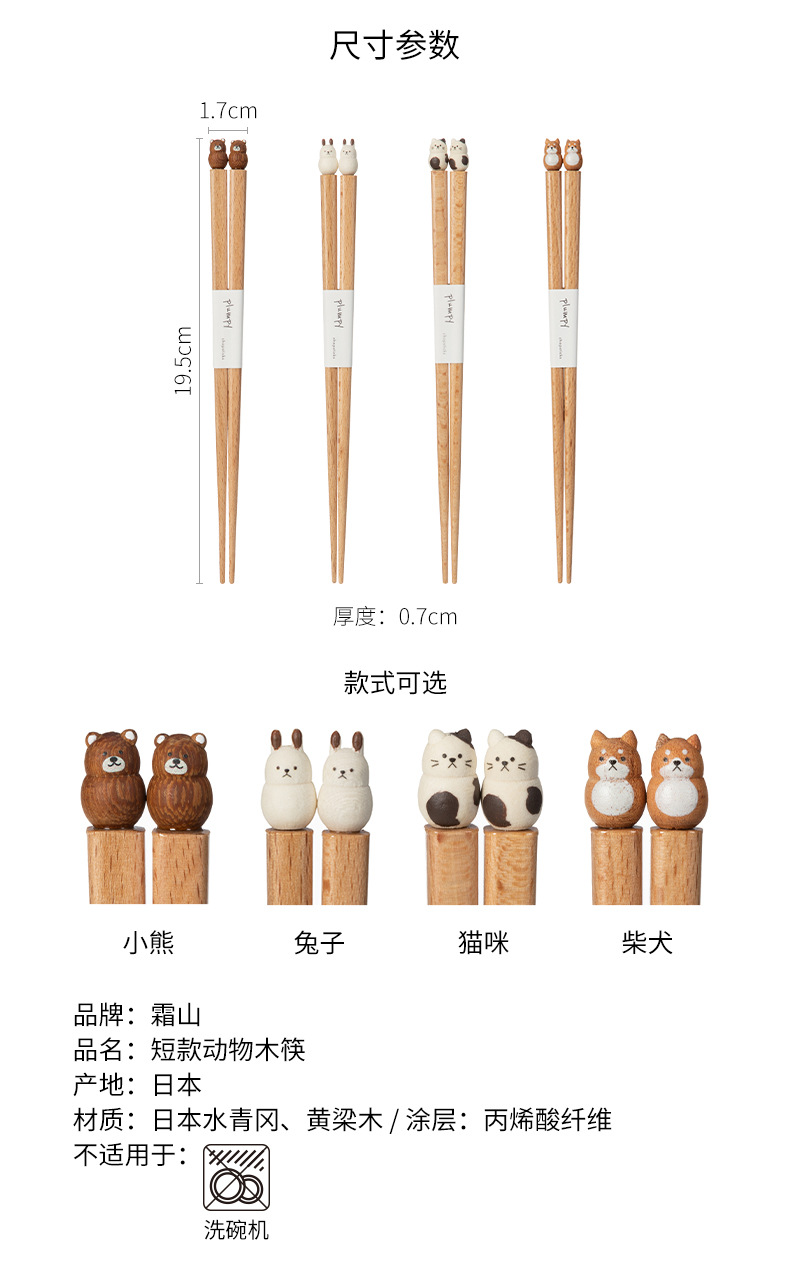 프로스트 마운틴 일본 수입 젓가락 귀여운 시바견 곰 토끼 고양이 식기 개인용 젓가락 가정용 나무젓가락