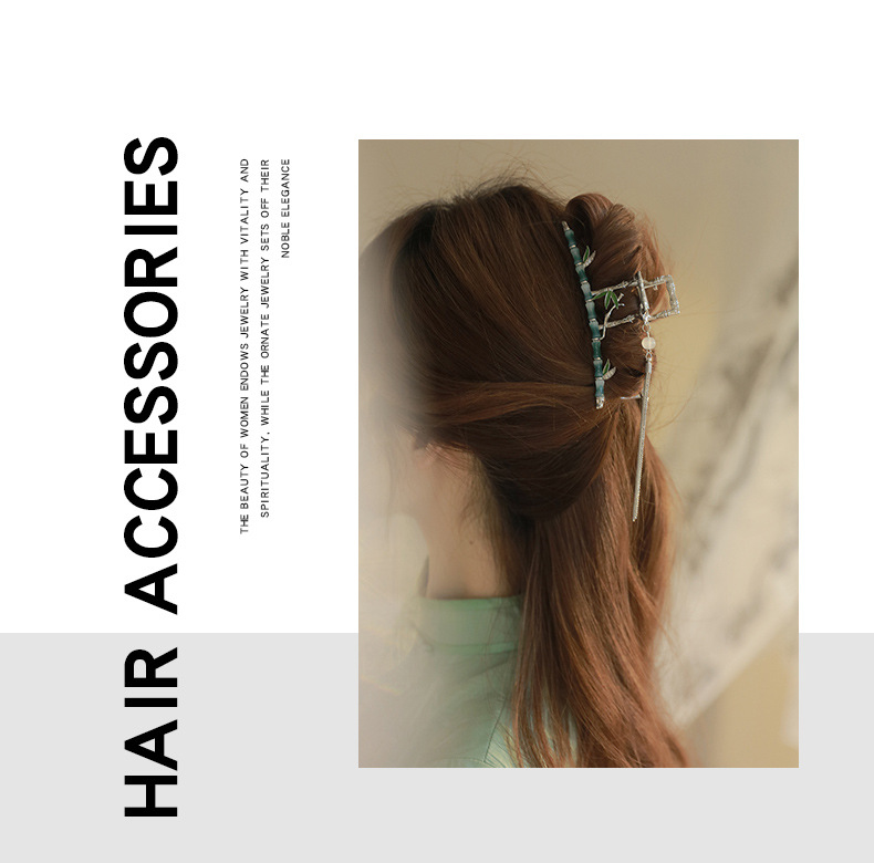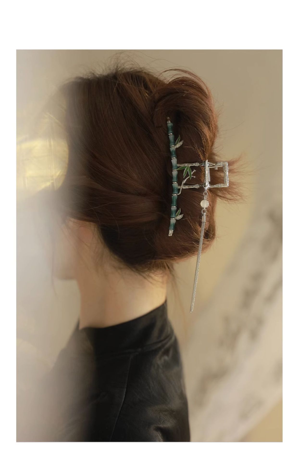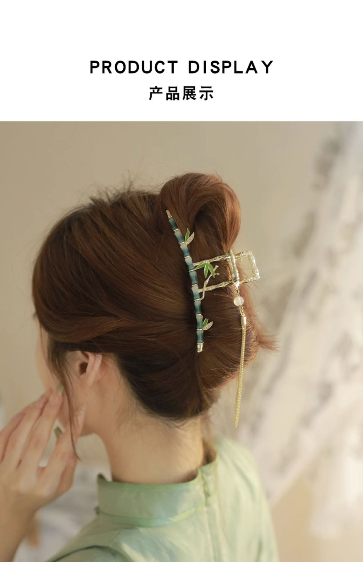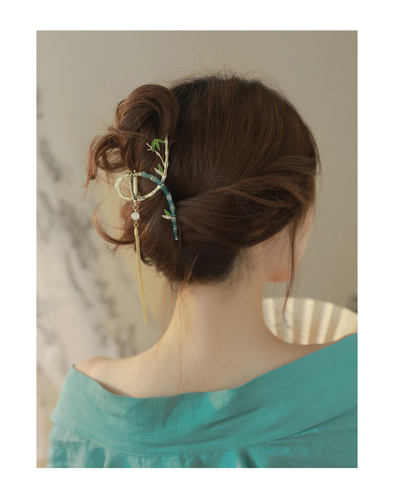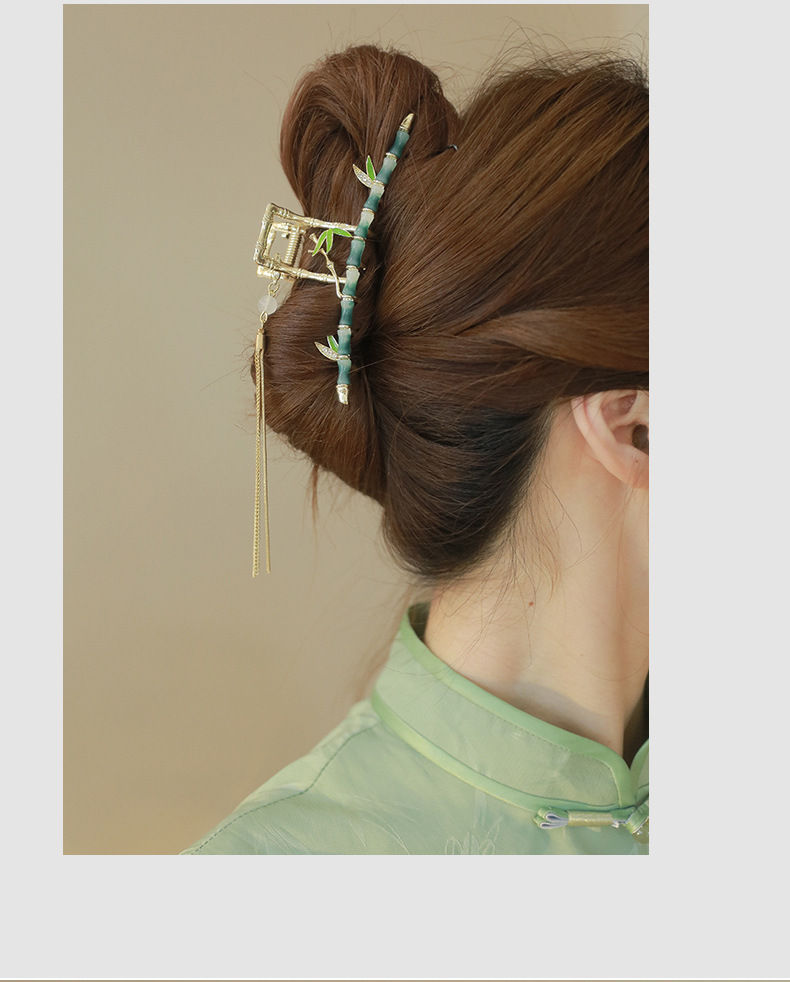 2023 Guofeng 대나무 술 잡아 클립 고급 감각 대형 머리핀 여성용 머리 상어 클립 골동품 Hanfu 모자스토어 가기