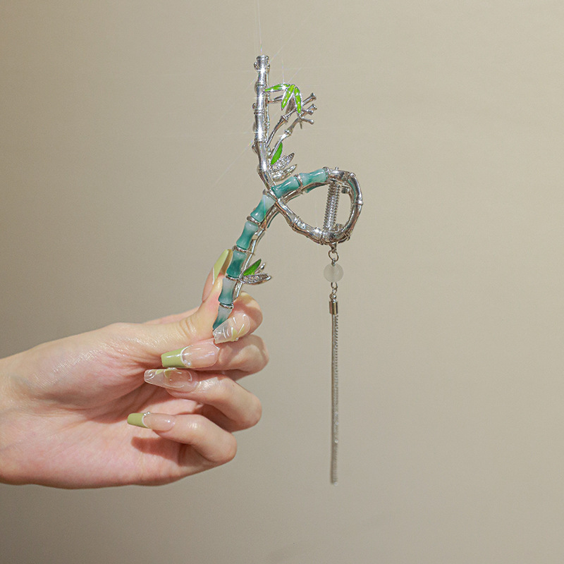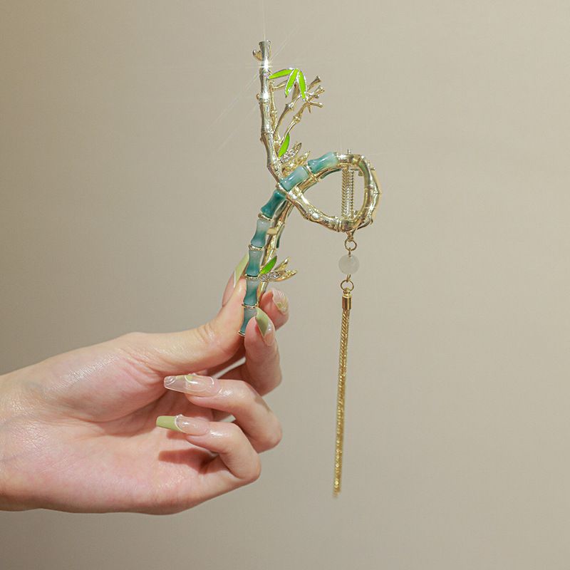 2023 Guofeng 대나무 술 잡아 클립 고급 감각 대형 머리핀 여성용 머리 상어 클립 골동품 Hanfu 모자