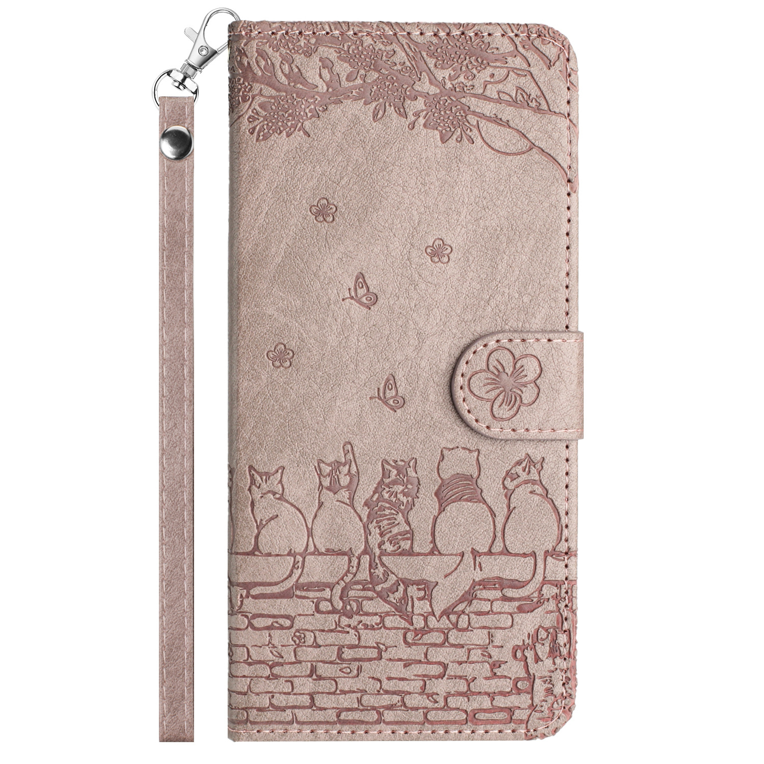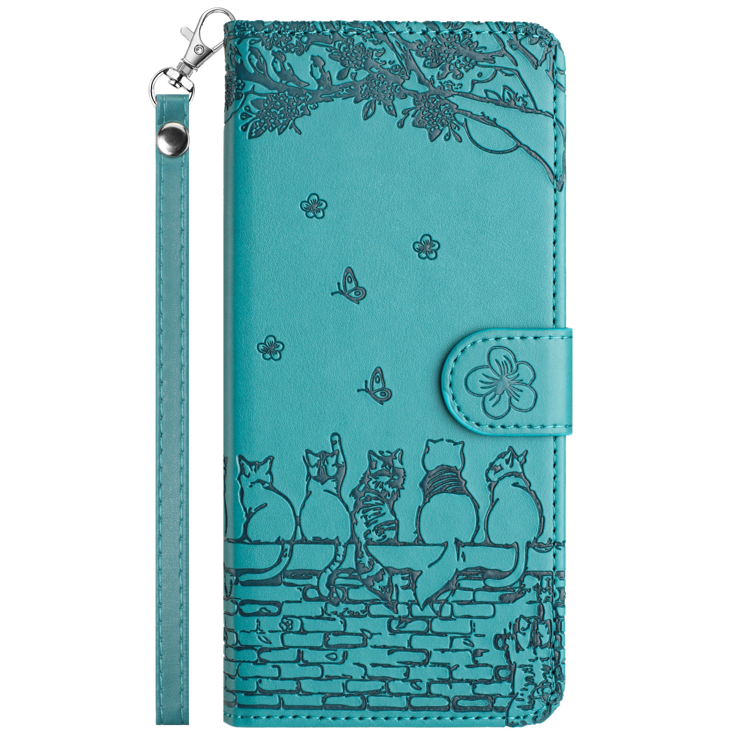 IPhone에 적합 14 휴대 전화 가죽 케이스 15 플러스 단색 양각 고양이 카드 지갑 보호 케이스 13Pro