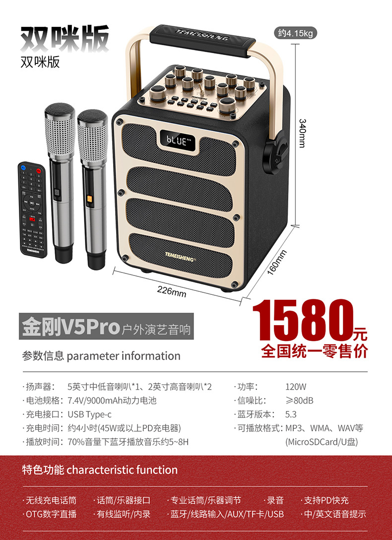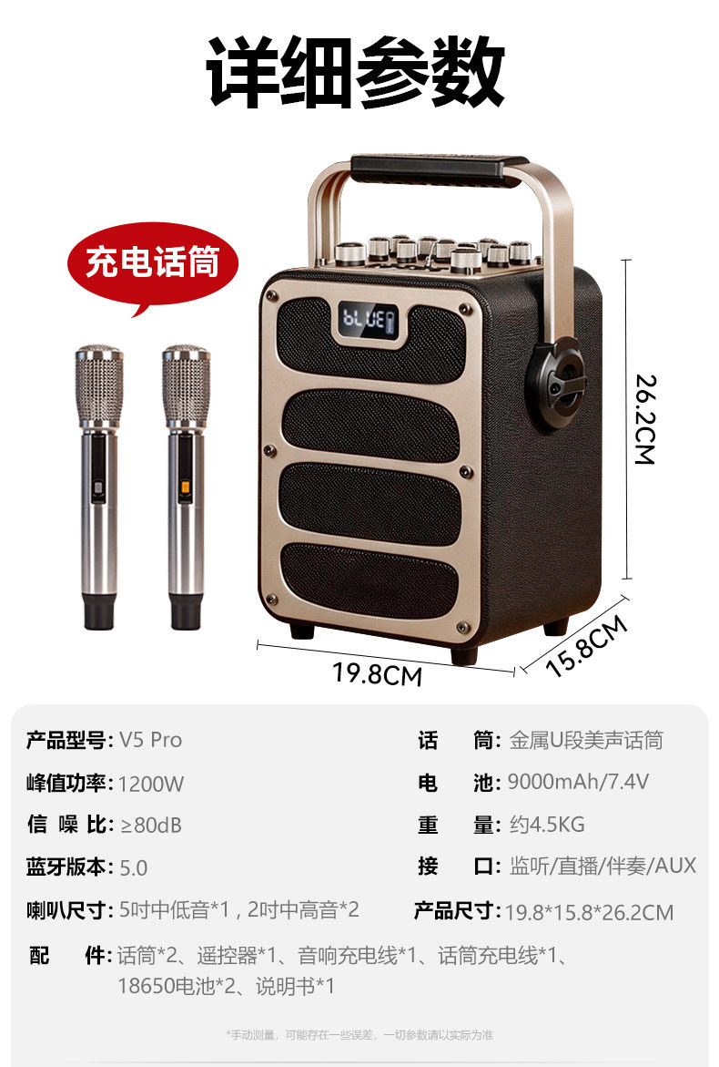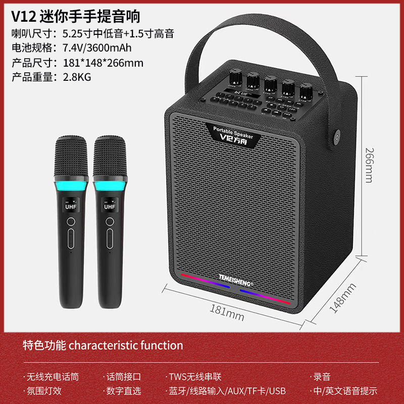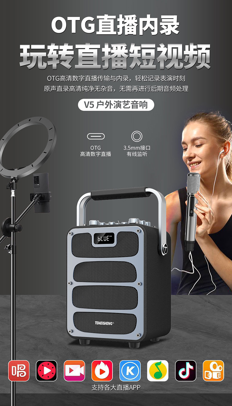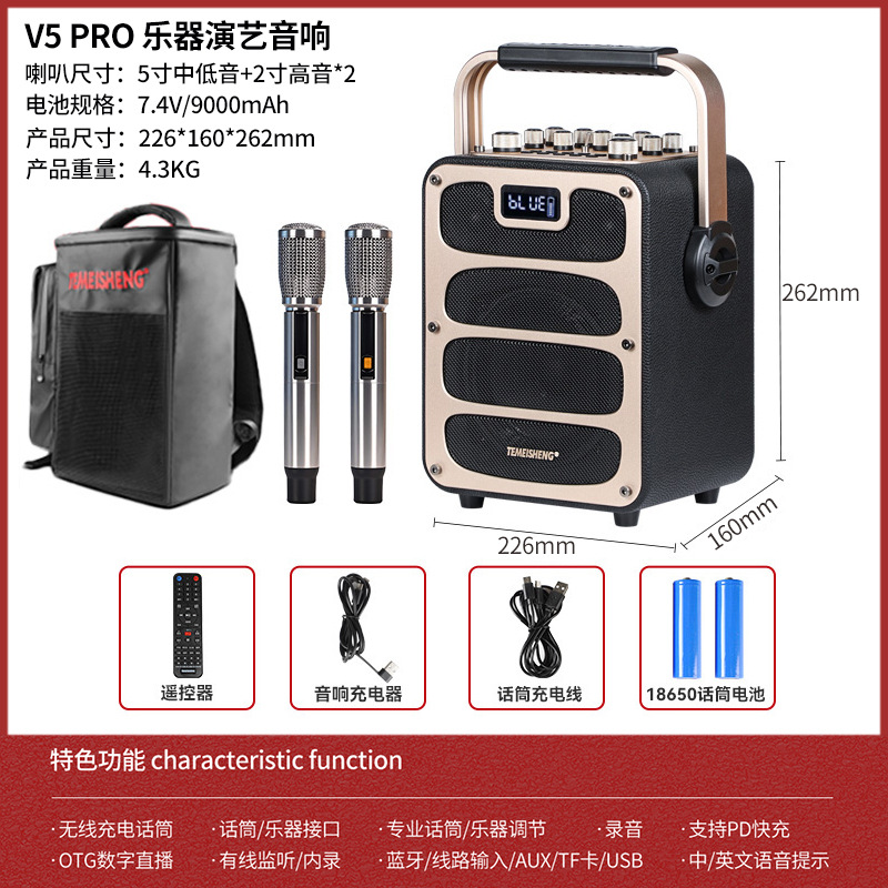 특미성 V5 광장 댄스 오디오 야외 노래방 라이브 방송 고출력 악기 이동식 무선 블루투스 스피커