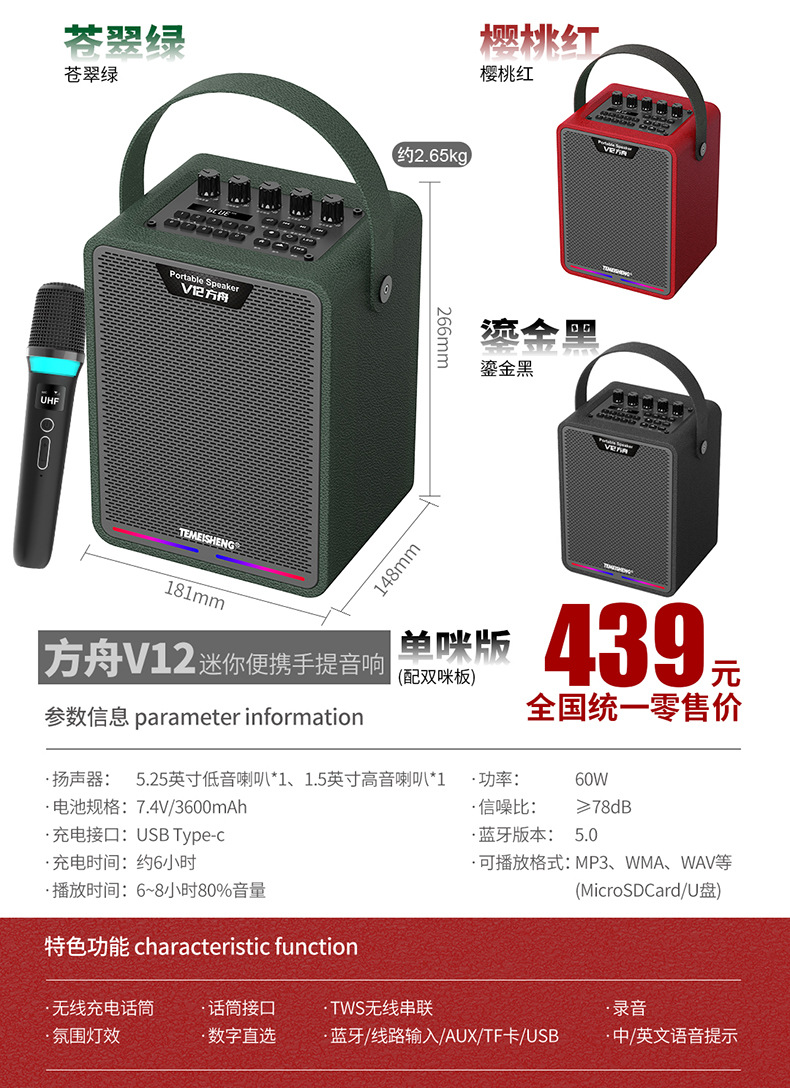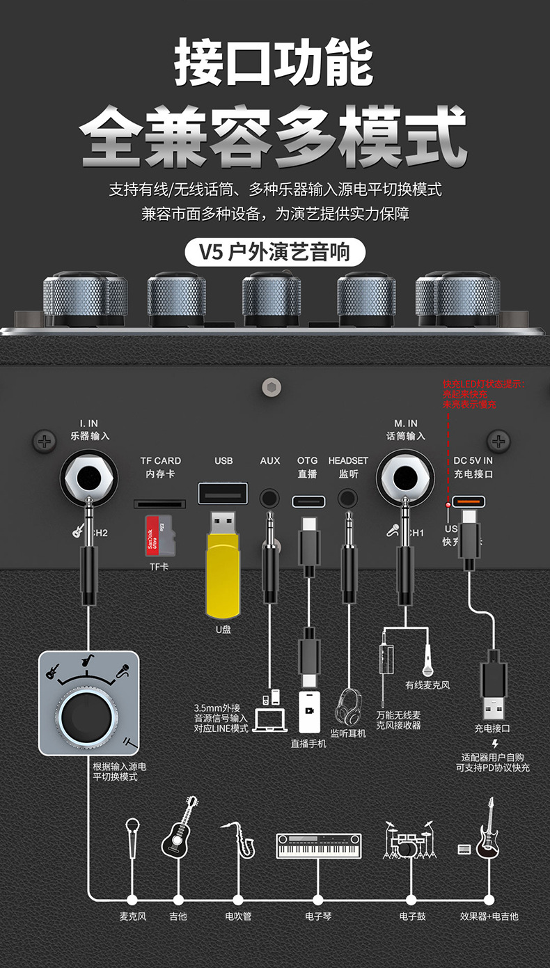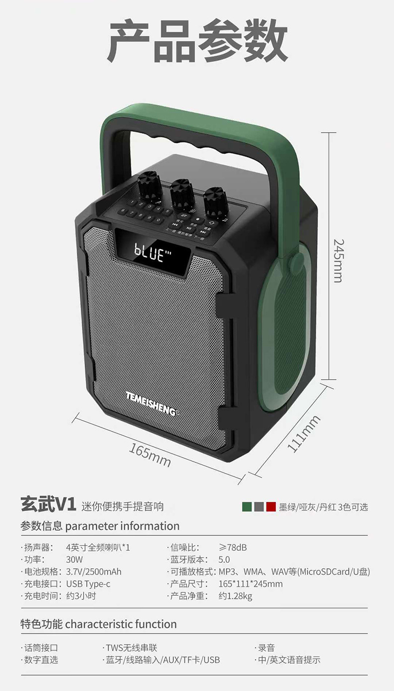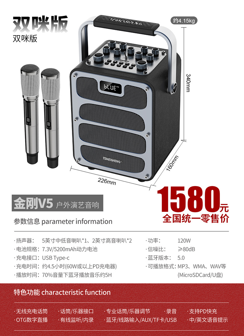 특미성 V5 광장 댄스 오디오 야외 노래방 라이브 방송 고출력 악기 이동식 무선 블루투스 스피커