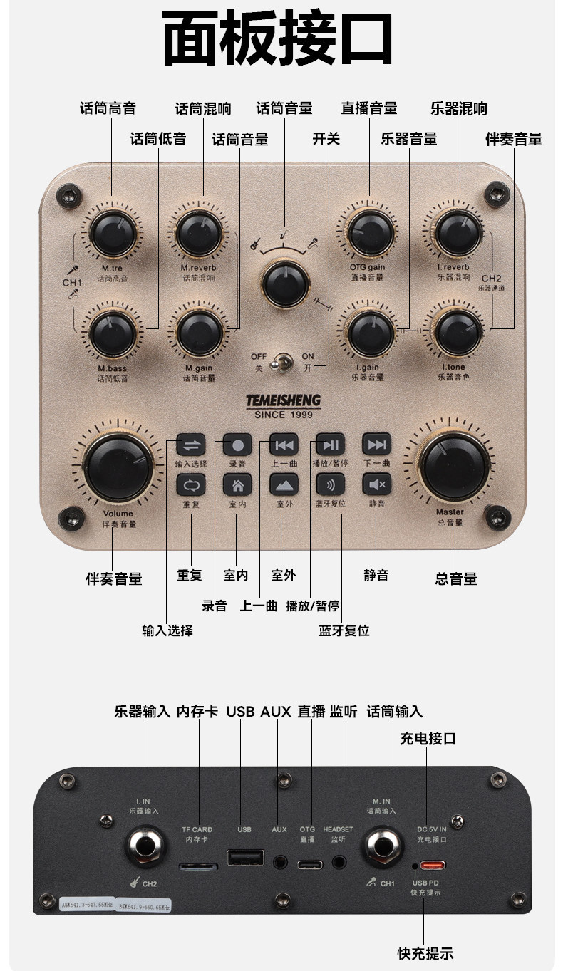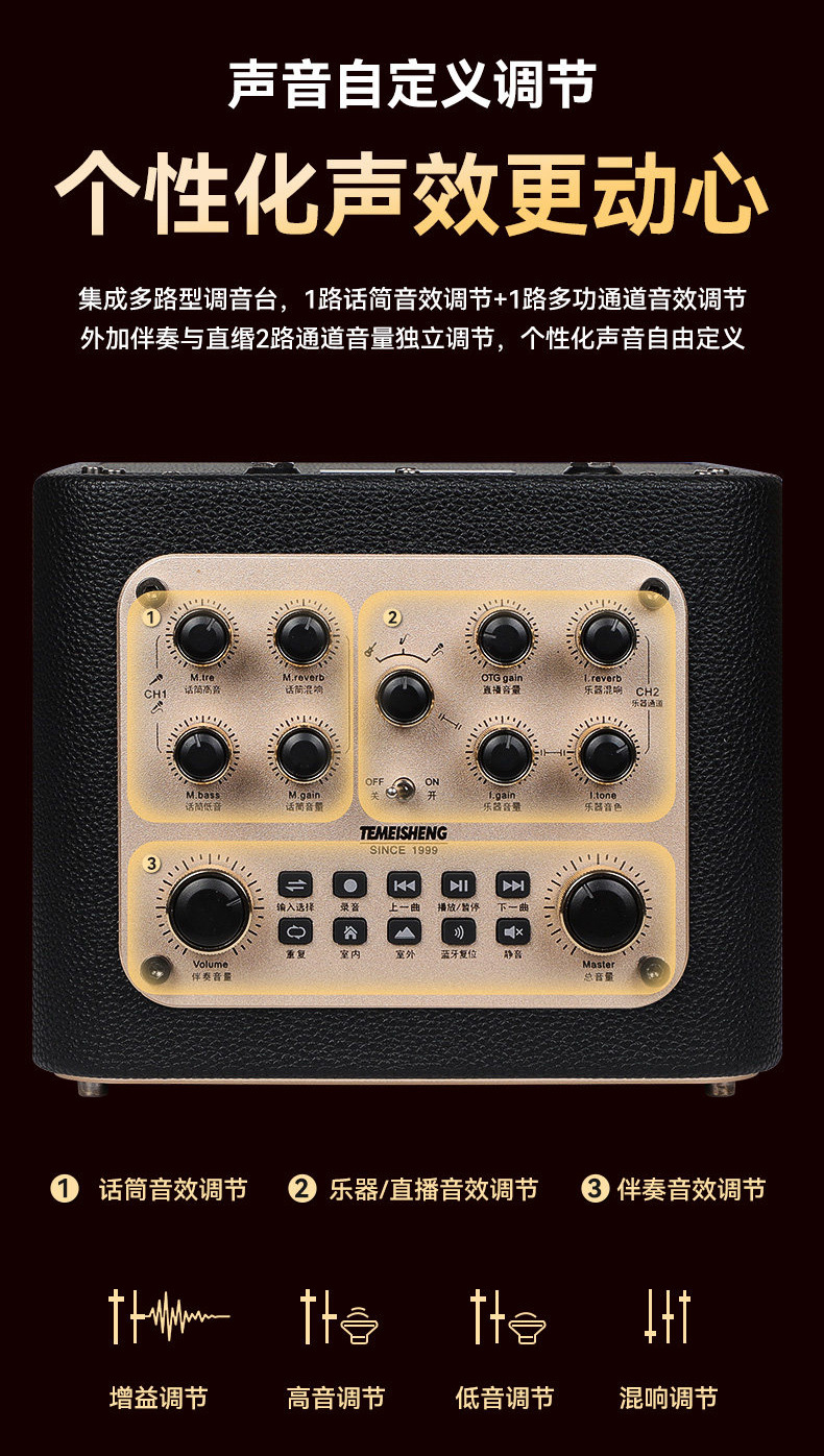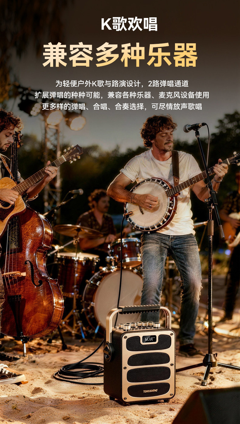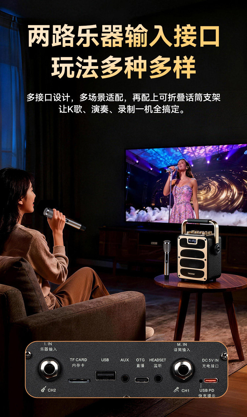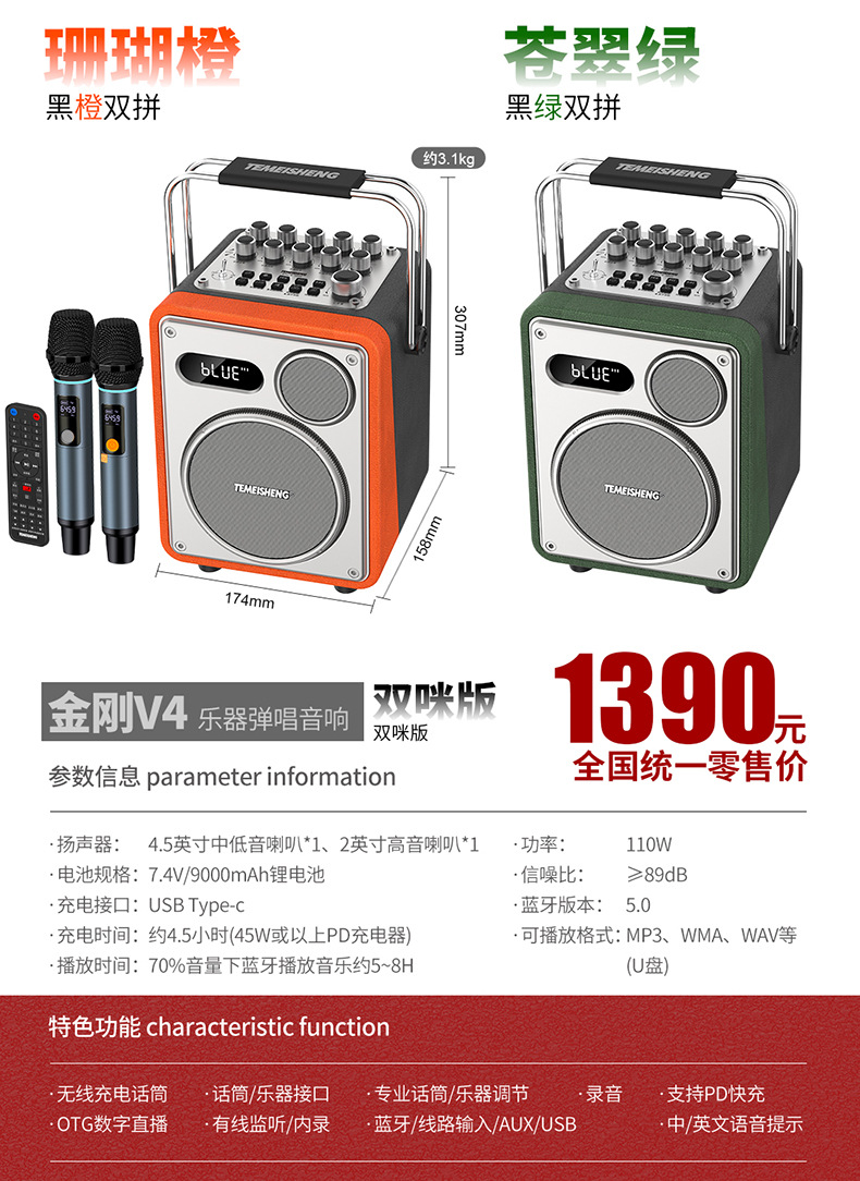 • 4.5inch 저음악 악기 연주용 스피커 + 메탈 충전식 듀얼 마이크