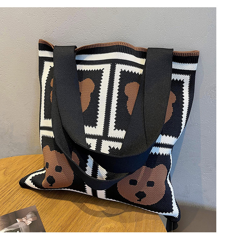 새로운 귀여운 만화 곰 니트 숄더 핸드백 봄과 여름 모든 매치 캐주얼 격자 무늬 여성용 대용량 토트 백스토어 가기