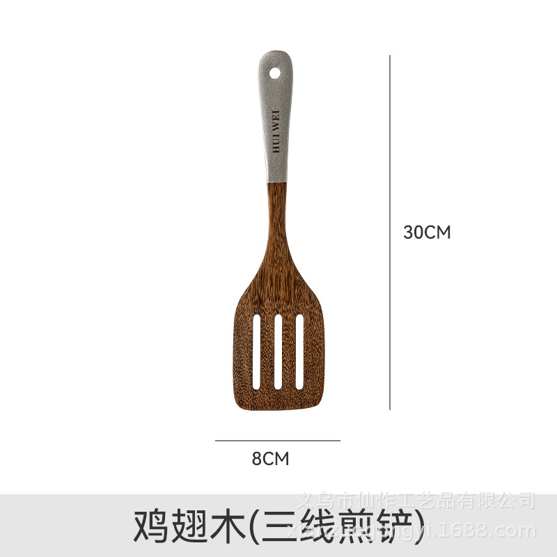 @ Xiao Mu Xian 실버 손잡이 닭 날개 나무 주걱 가정 비 스틱 팬 특수 나무 주걱 나무 숟가락 주방 용품 세트 주걱