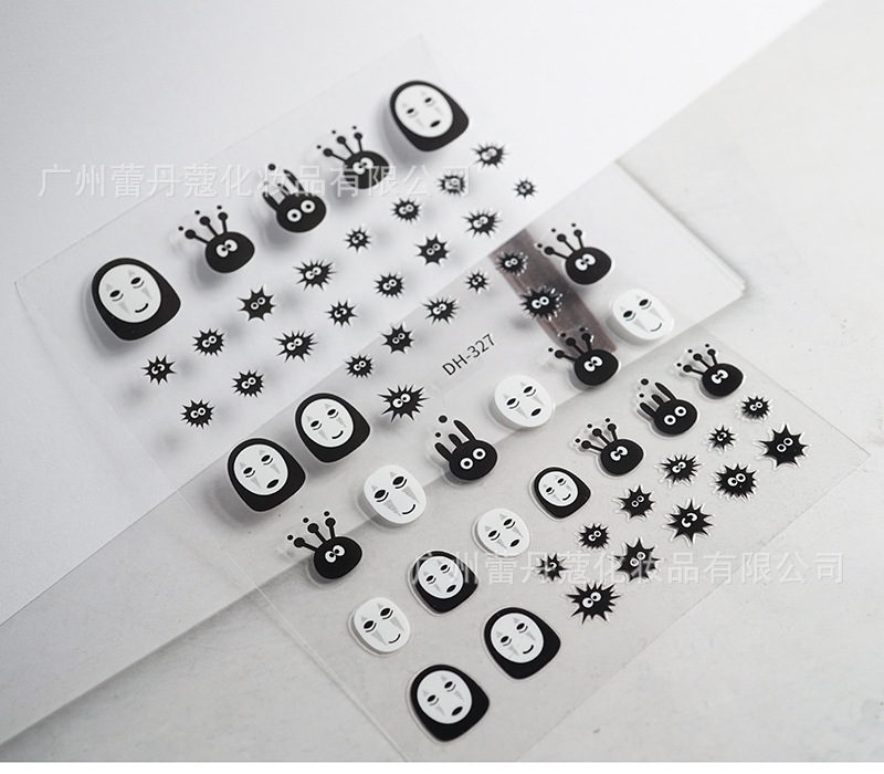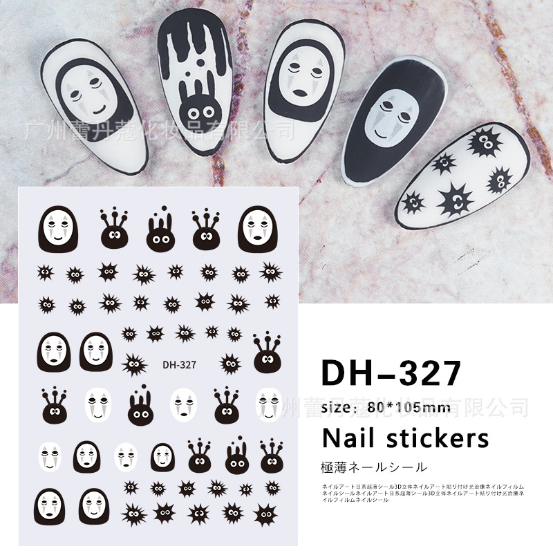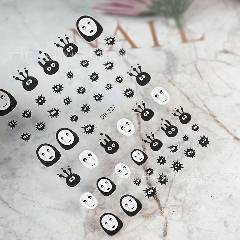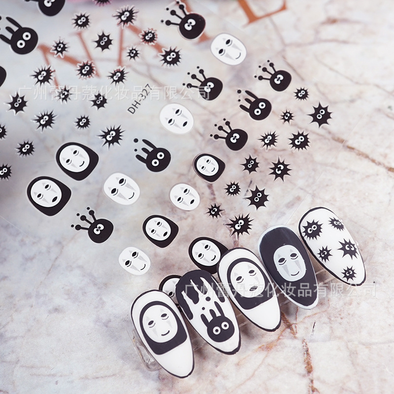 폭발적인 네일 아트 스티커 얇은 흑백 모든 성도 디아블로 스타일 얼굴없는 남성 만화 애니메이션 네일 DIY 데칼스토어 가기