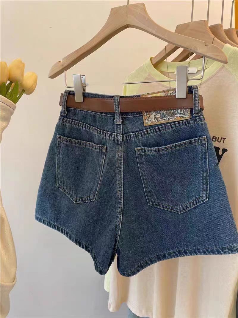 블루 워싱 빈티지 A-라인 데님 반바지 여자의 여름 2023 새로운 하이 웨이스트 슬리밍 핫 팬츠스토어 가기