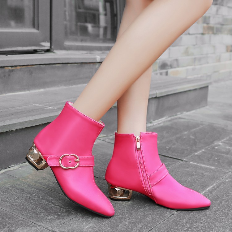 가을 낮은 굽 미디 부츠 여성 부츠 메탈릭 플러스 사이즈 40-48 로즈 레드 마틴 앵클 부츠스토어 가기