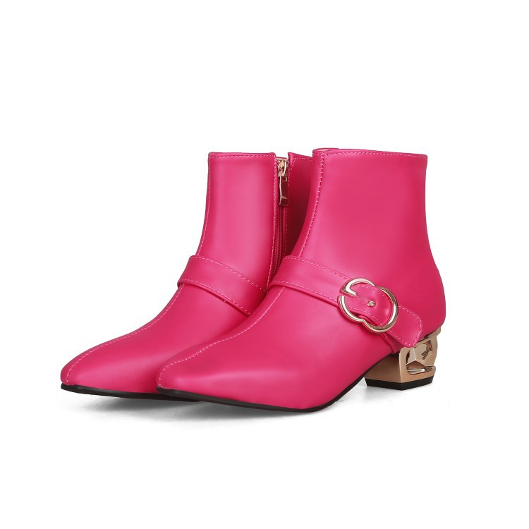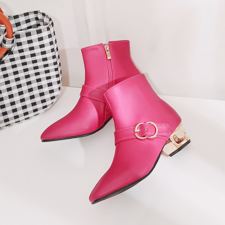 가을 낮은 굽 미디 부츠 여성 부츠 메탈릭 플러스 사이즈 40-48 로즈 레드 마틴 앵클 부츠