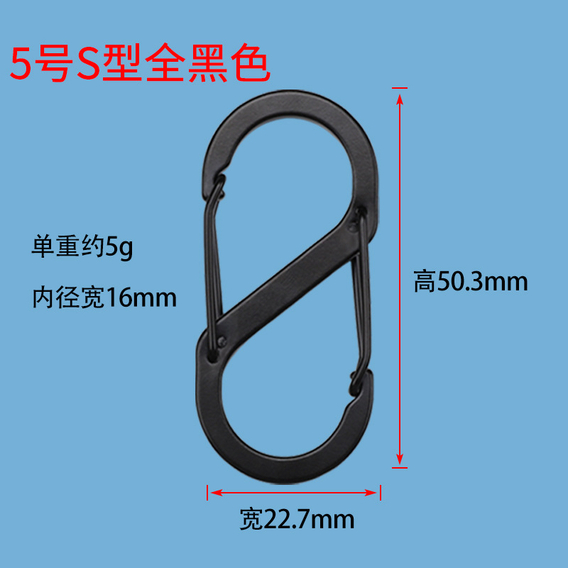S자 등산 버클 알루미늄 합금 스프링 버클 블랙 스틸 와이어 버클 주전자 열쇠 고리 야외 캠핑 후크 8 자 버클스토어 가기