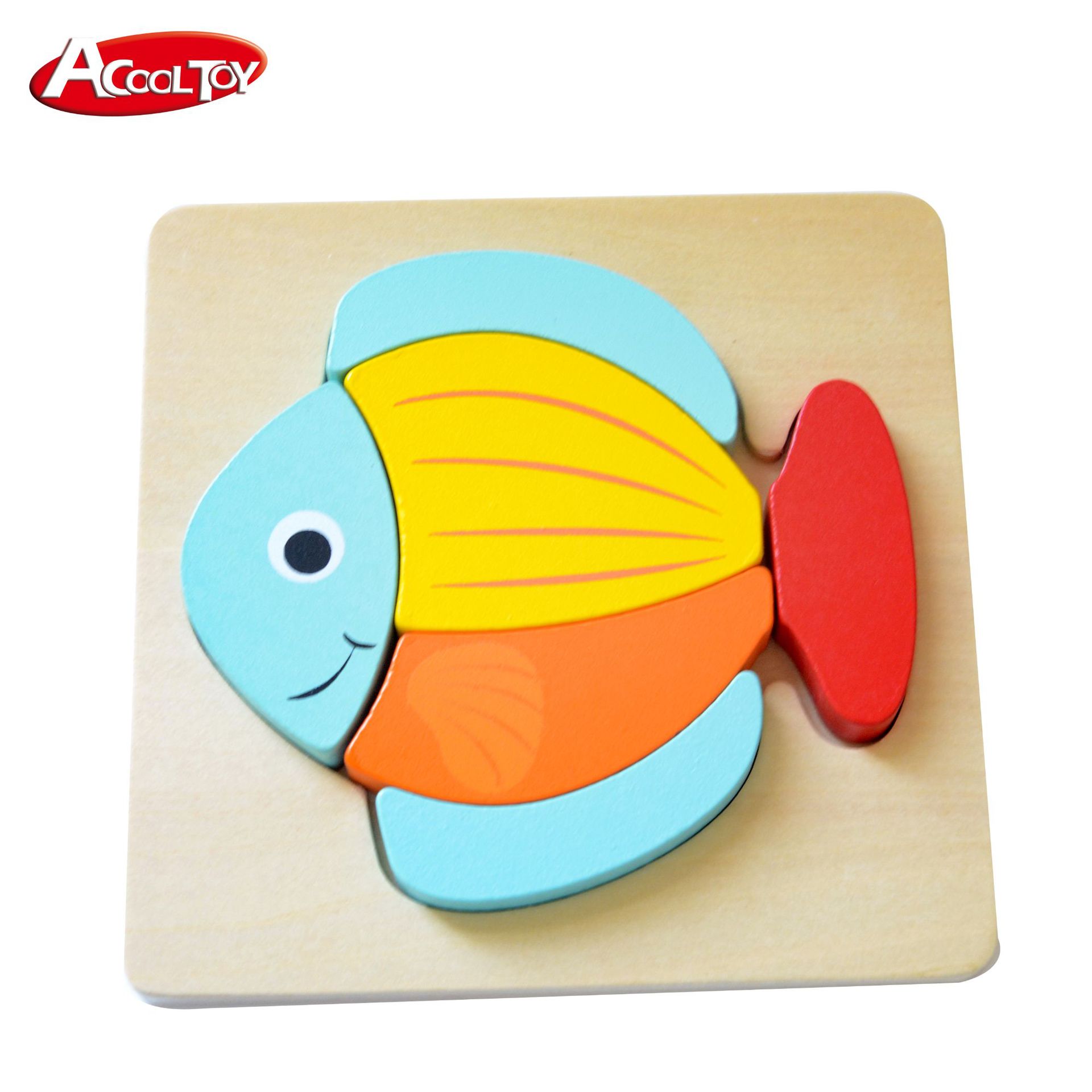 공장 맞춤형 어린이 퍼즐 3 차원 빌딩 블록 나무 강아지 작은 물고기 퍼즐 소년과 소녀 아기를위한 수제 평면 퍼즐스토어 가기