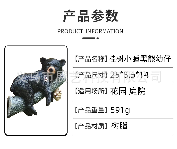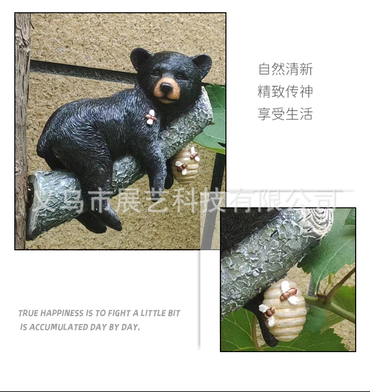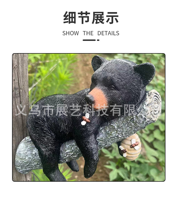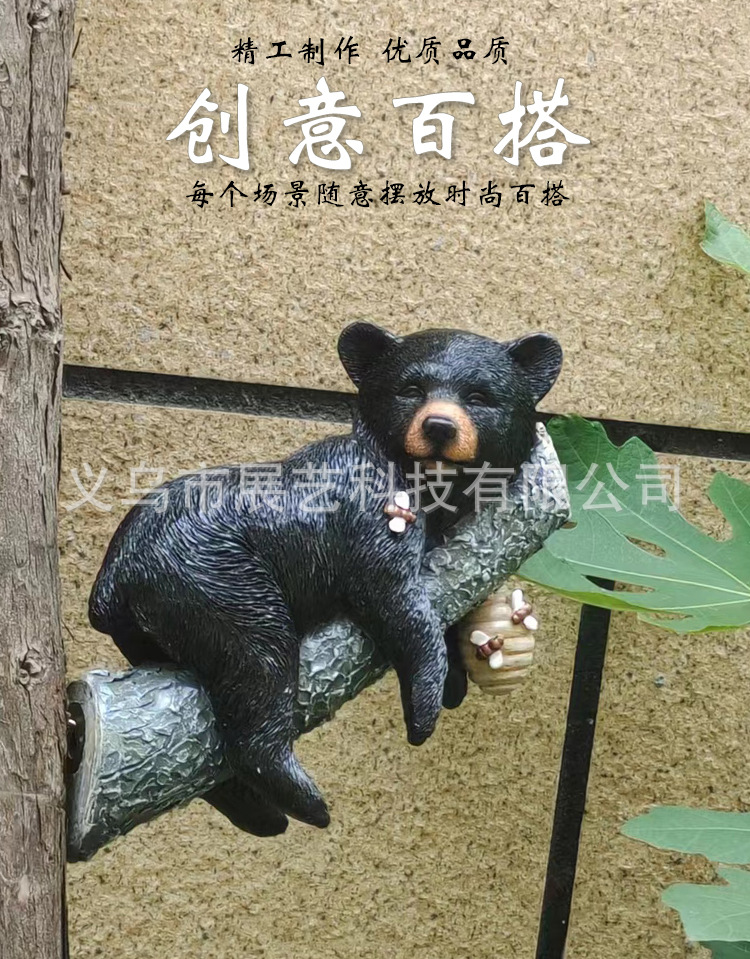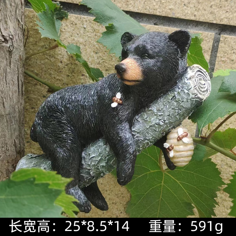 국경 간 시뮬레이션 동물 장식 장식품 검은 곰 보유 나무 동상 안뜰 야외 장식 펜던트 수지 공예스토어 가기