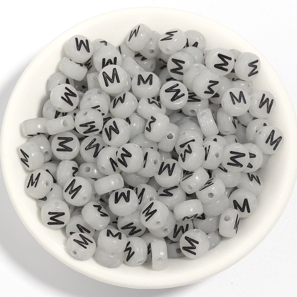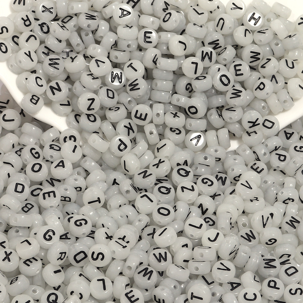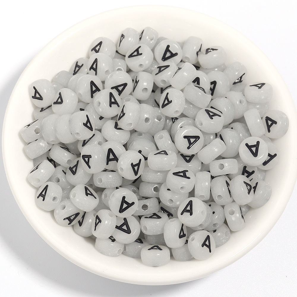 100/팩 아크릴 빛나는 블랙 영어 편지 플랫 라운드 비즈 DIY 페르시 팔찌 보석 액세서리스토어 가기
