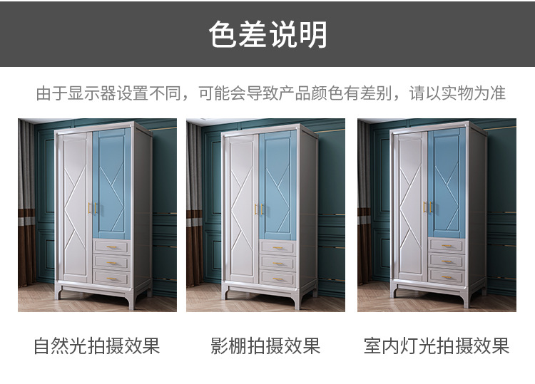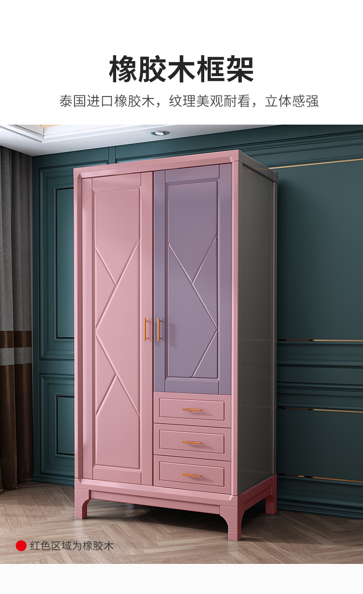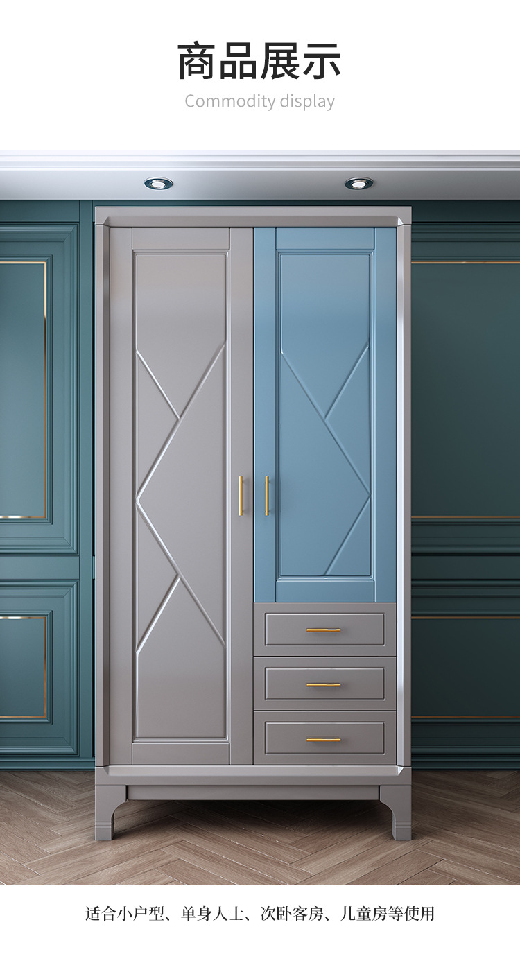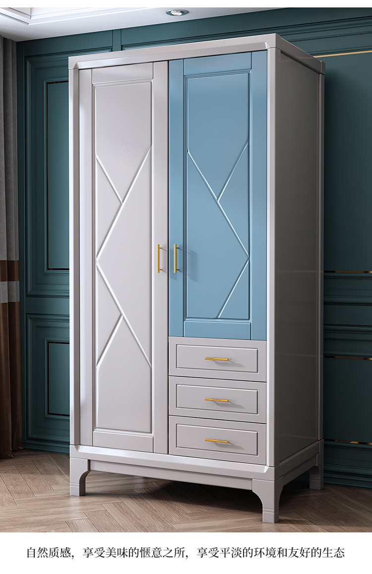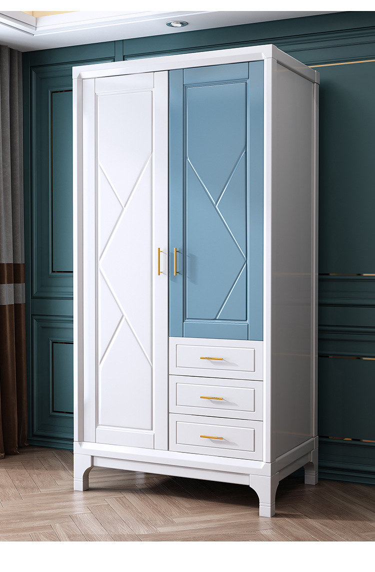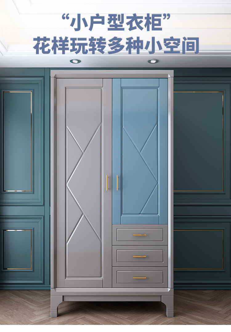 美式轻奢两门衣柜小户型家用现代简约衣橱卧室储物柜儿童衣柜批发