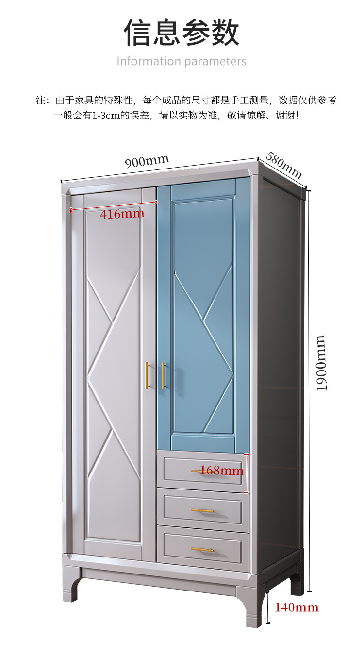 • 서랍이있는 2 도어 옷장 900*580*1900mm