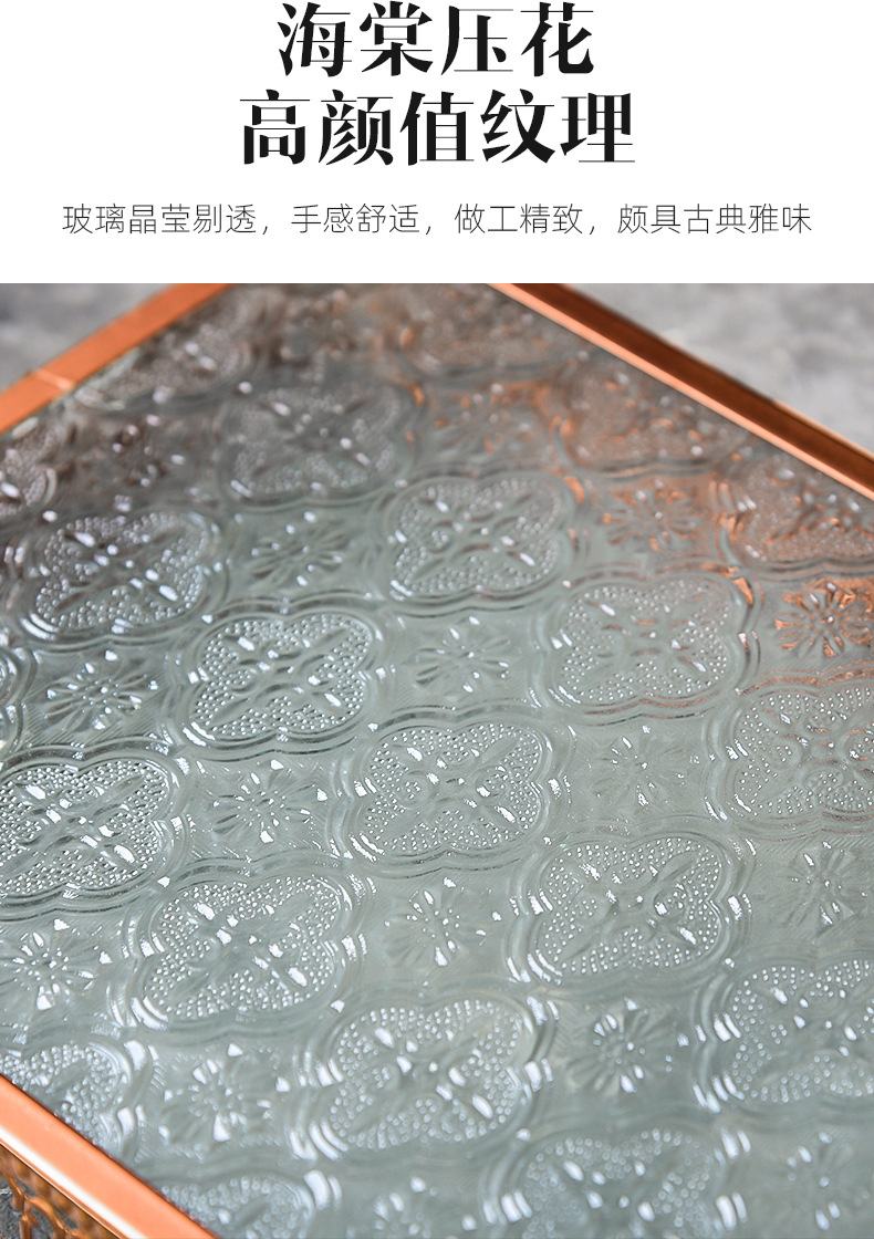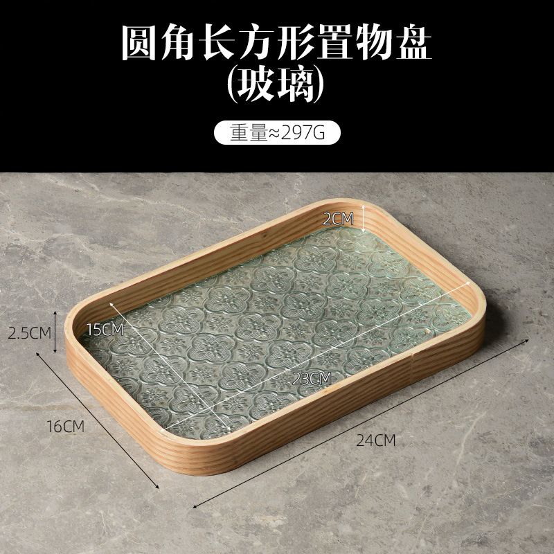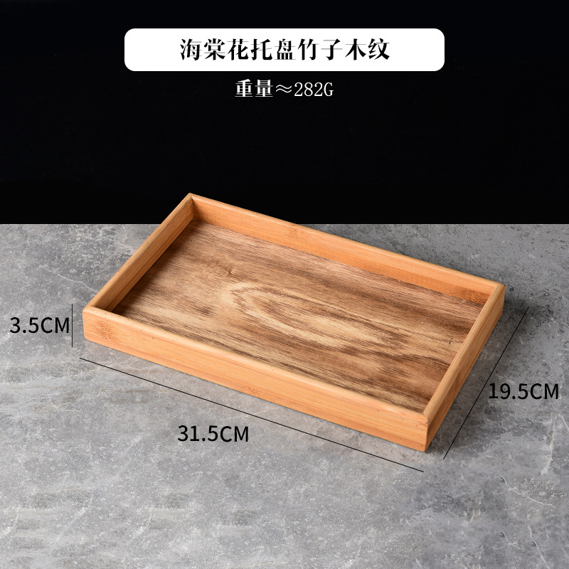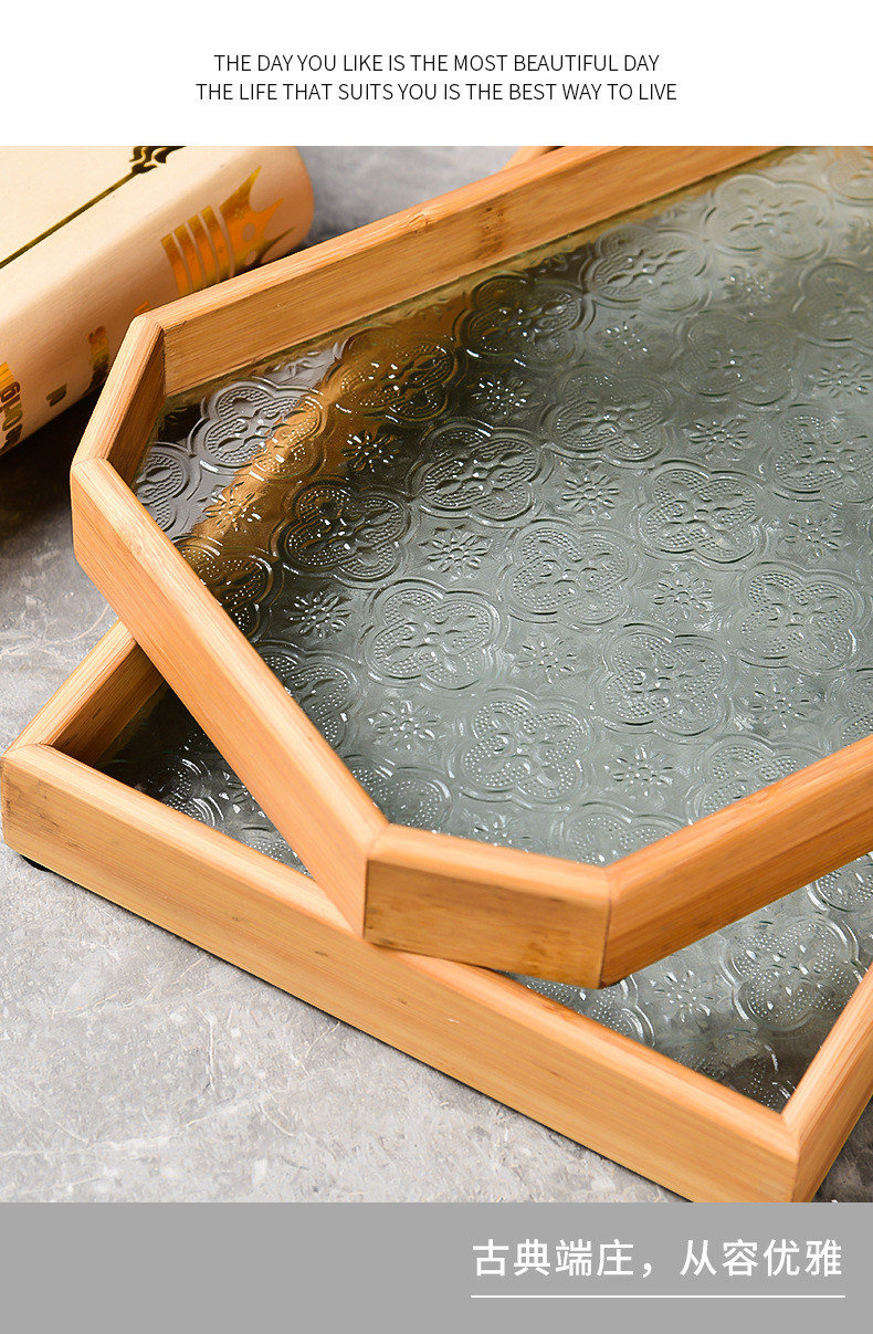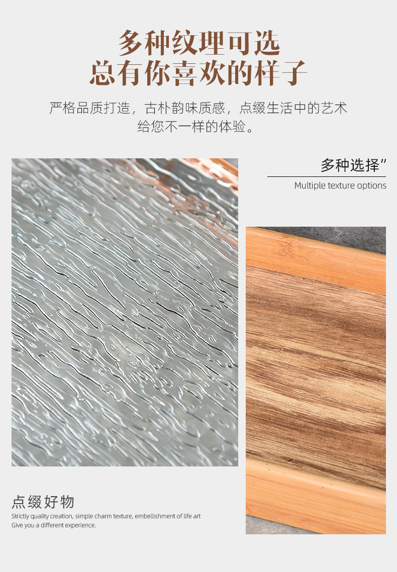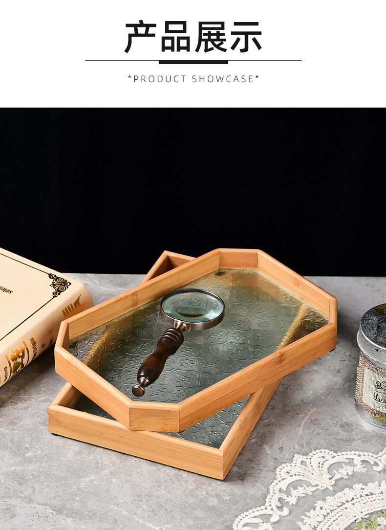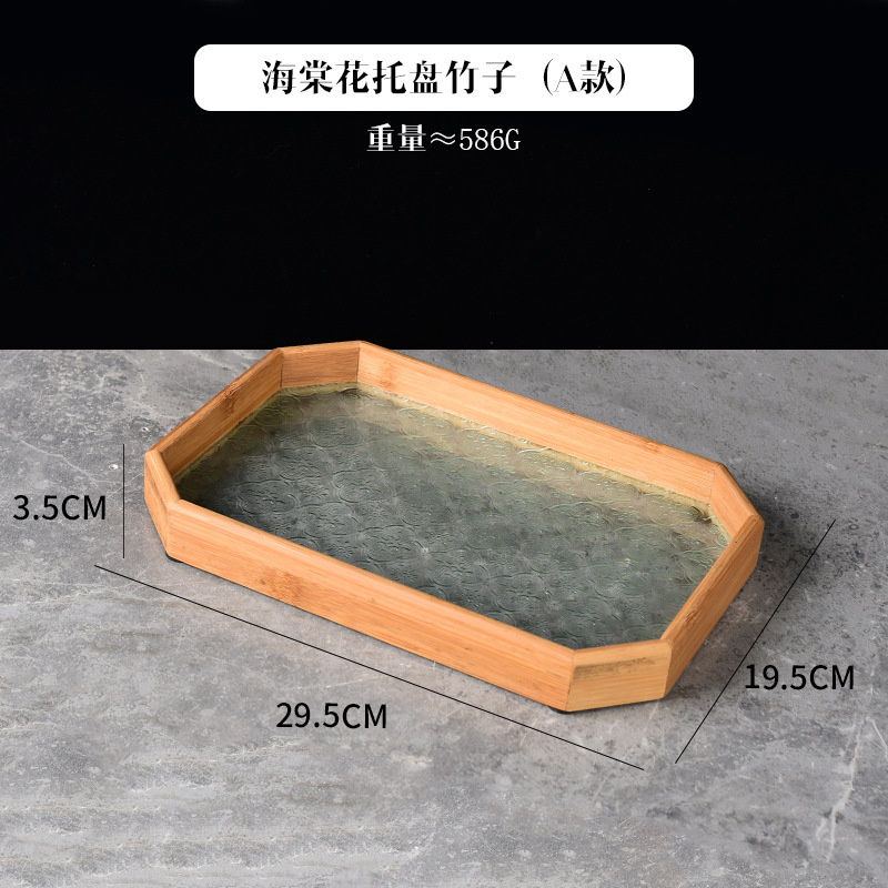 베고니아 양각 유리 대나무 사이드 트레이 대나무 직사각형 티 트레이 보관 장식품 찻잔 과일 트레이