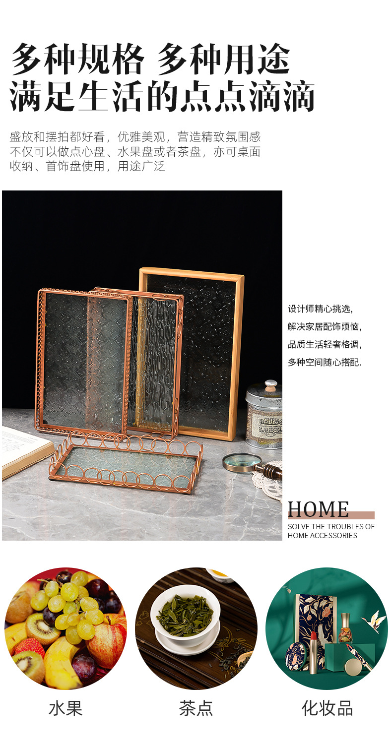 베고니아 양각 유리 대나무 사이드 트레이 대나무 직사각형 티 트레이 보관 장식품 찻잔 과일 트레이스토어 가기