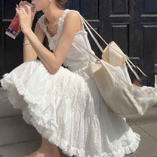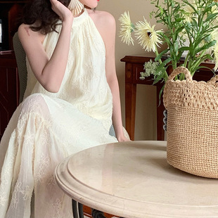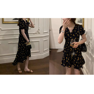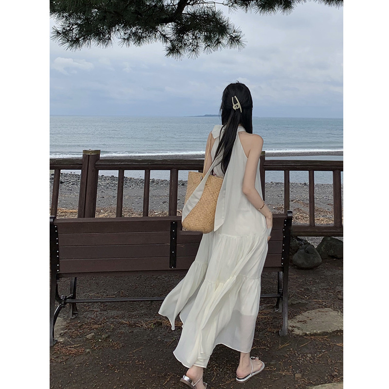 리틀 뉴 [여름 도망 공주] 프렌치 넥 원피스 디자인 틈새 롱 스커트 2023