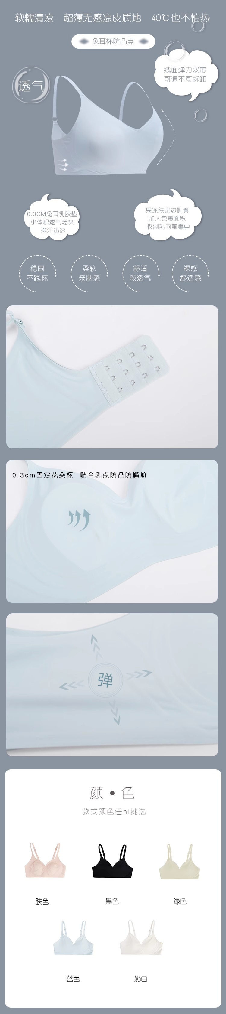 토끼 귀 초박형 심리스 속옷 여성용 큰 가슴 작은 가슴 가슴 가슴 가슴 처짐 방지 비 스틸 링 여름용 통기성 브래지어