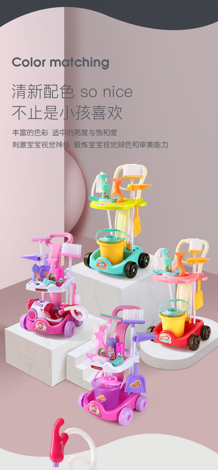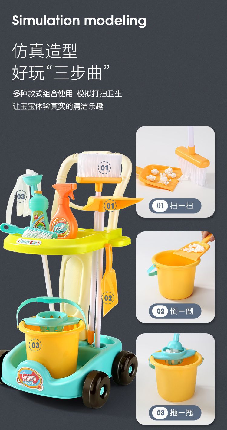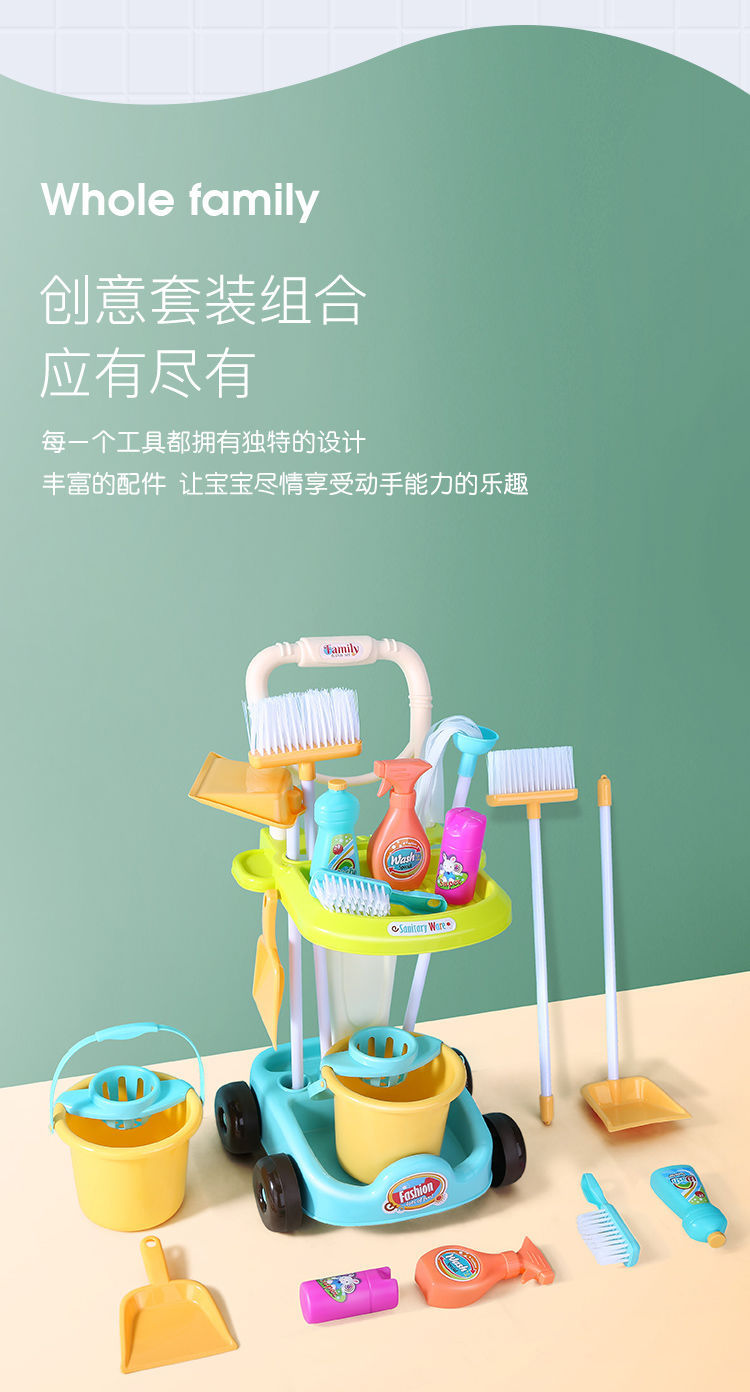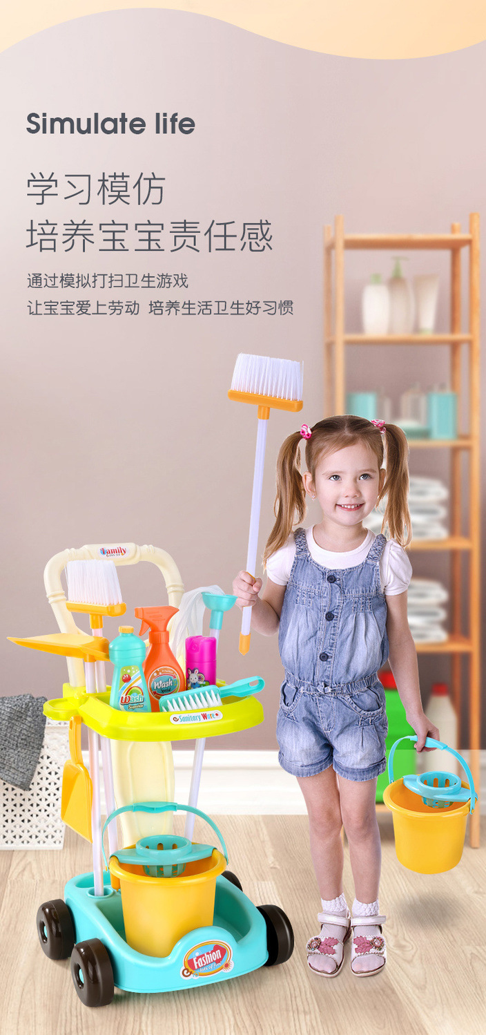 어린이 청소 빗자루 쓰레받이 장난감 청소 청소 청소 세트 도구 트롤리 시뮬레이션 놀이 집 청소 장난감스토어 가기