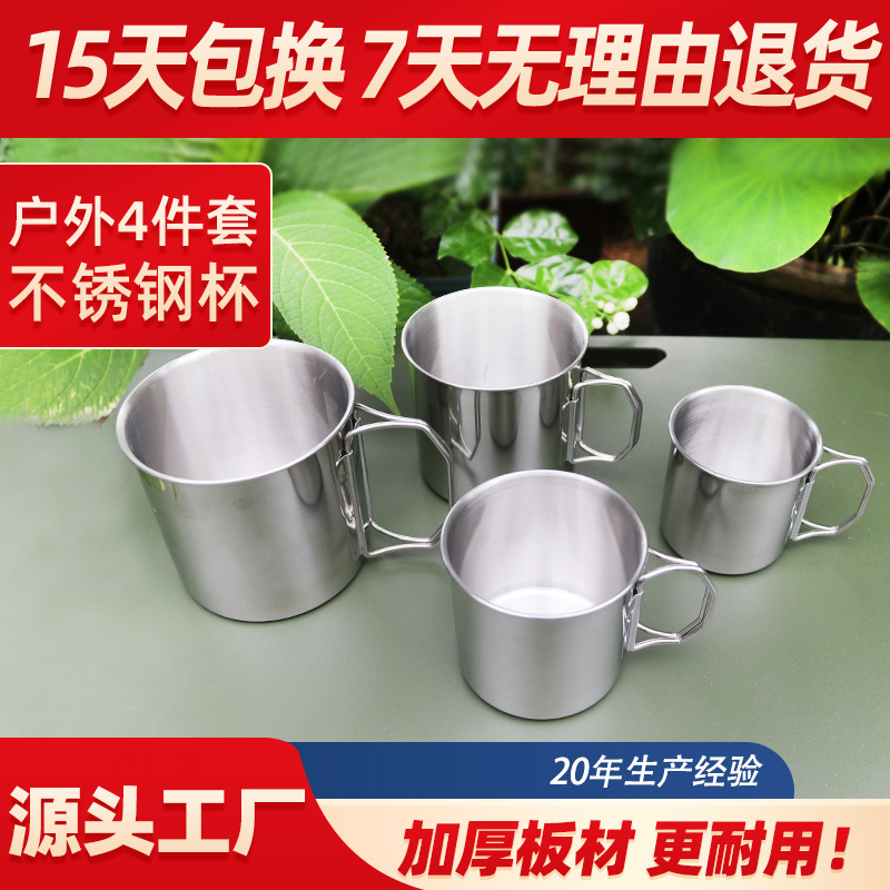 304 스테인레스 컵 야외 휴대용 물 컵 캠핑 접이식 등산 컵 보관 가능 피크닉 컵 4 개 세트