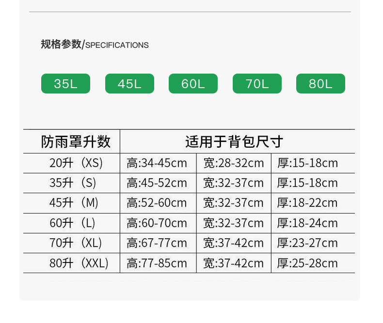 옥스포드 천 배낭 레인 커버 야외 등산 배낭 방수 커버 책가방 먼지 커버 20-100 리터 배낭스토어 가기