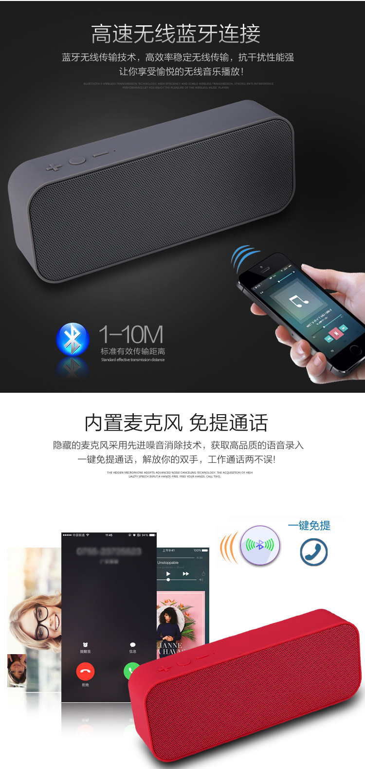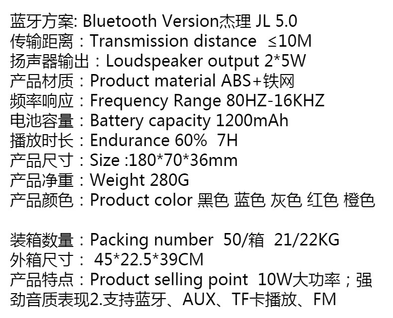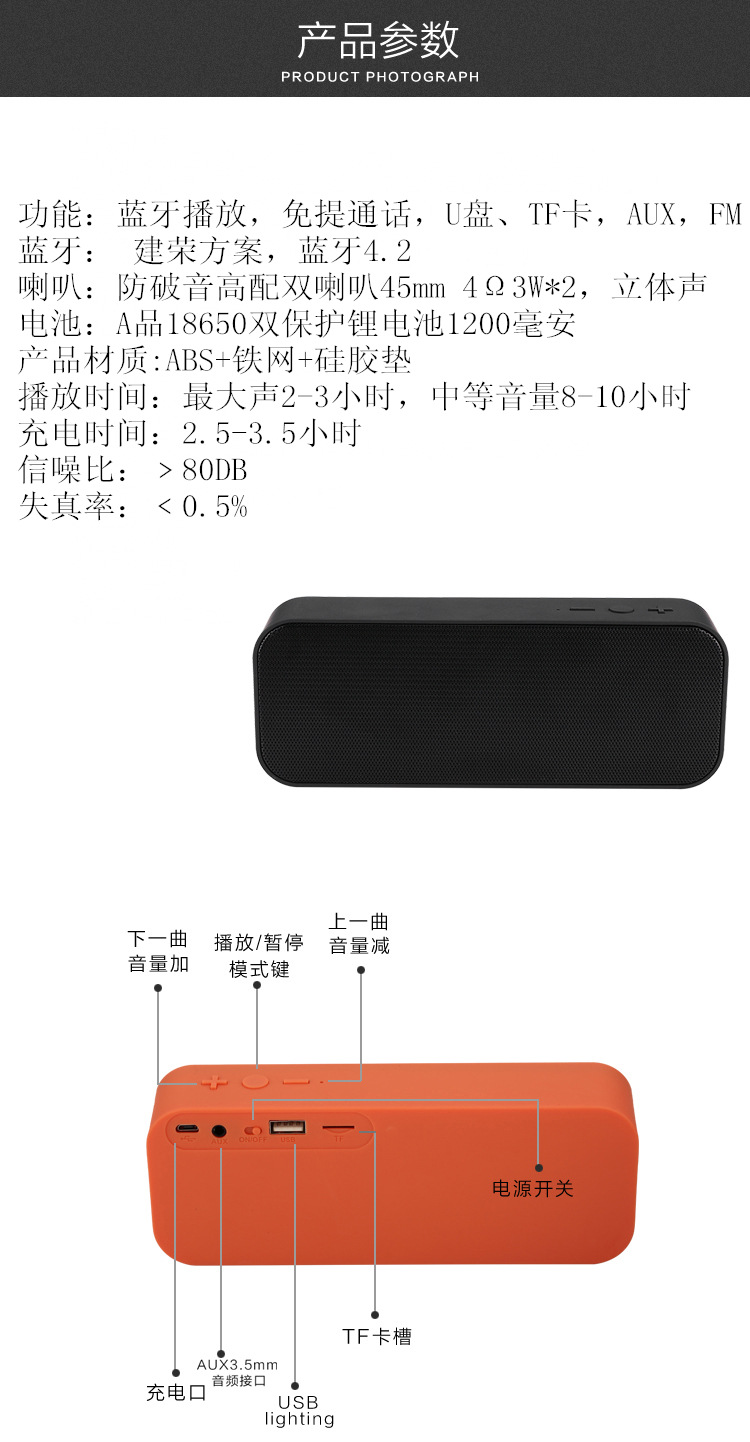크로스 보더 듀얼 스피커 블루투스 스피커 휴대용 직사각형 블루투스 스피커 서브 우퍼 무선 스피커 카드 오디오