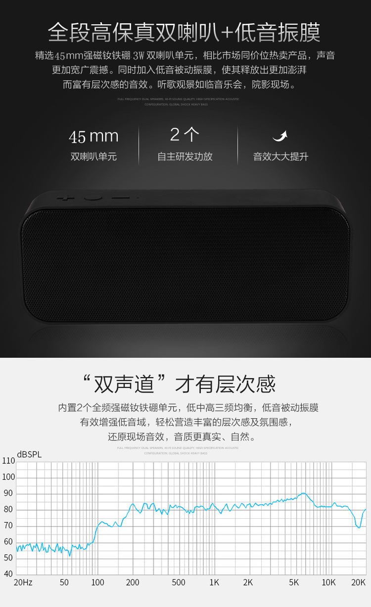 크로스 보더 듀얼 스피커 블루투스 스피커 휴대용 직사각형 블루투스 스피커 서브 우퍼 무선 스피커 카드 오디오스토어 가기