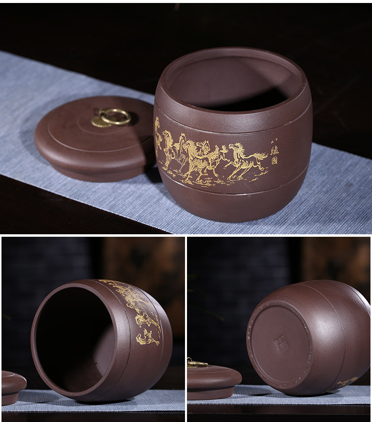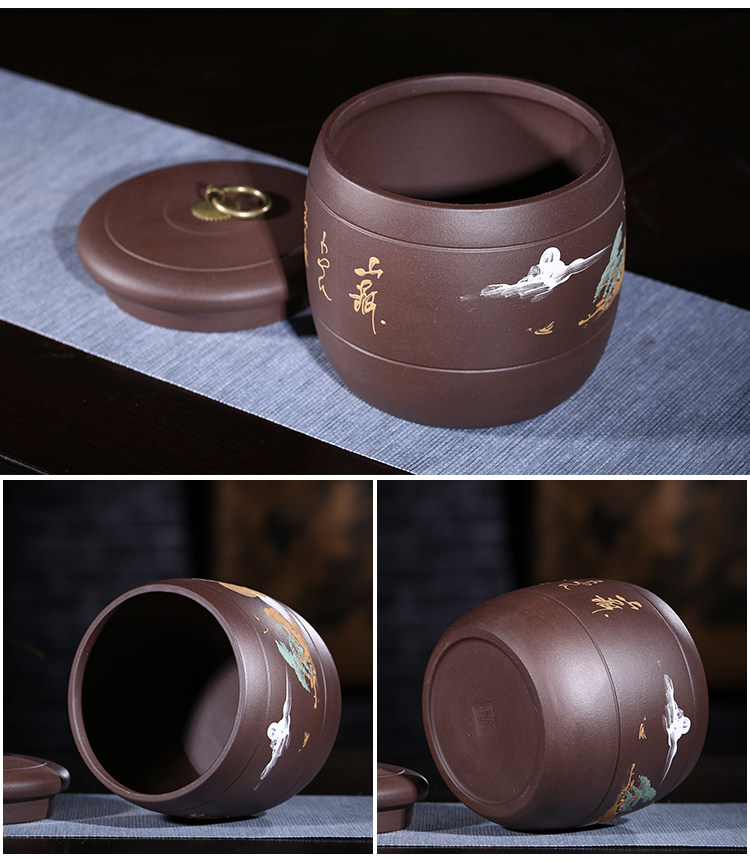 3ZBY 보라색 모래 찻주전자 이싱 세라믹 밀봉 냄비 Pu'er 차 상자 대형 각성 찻주전자 수동 저장 냄비 홈