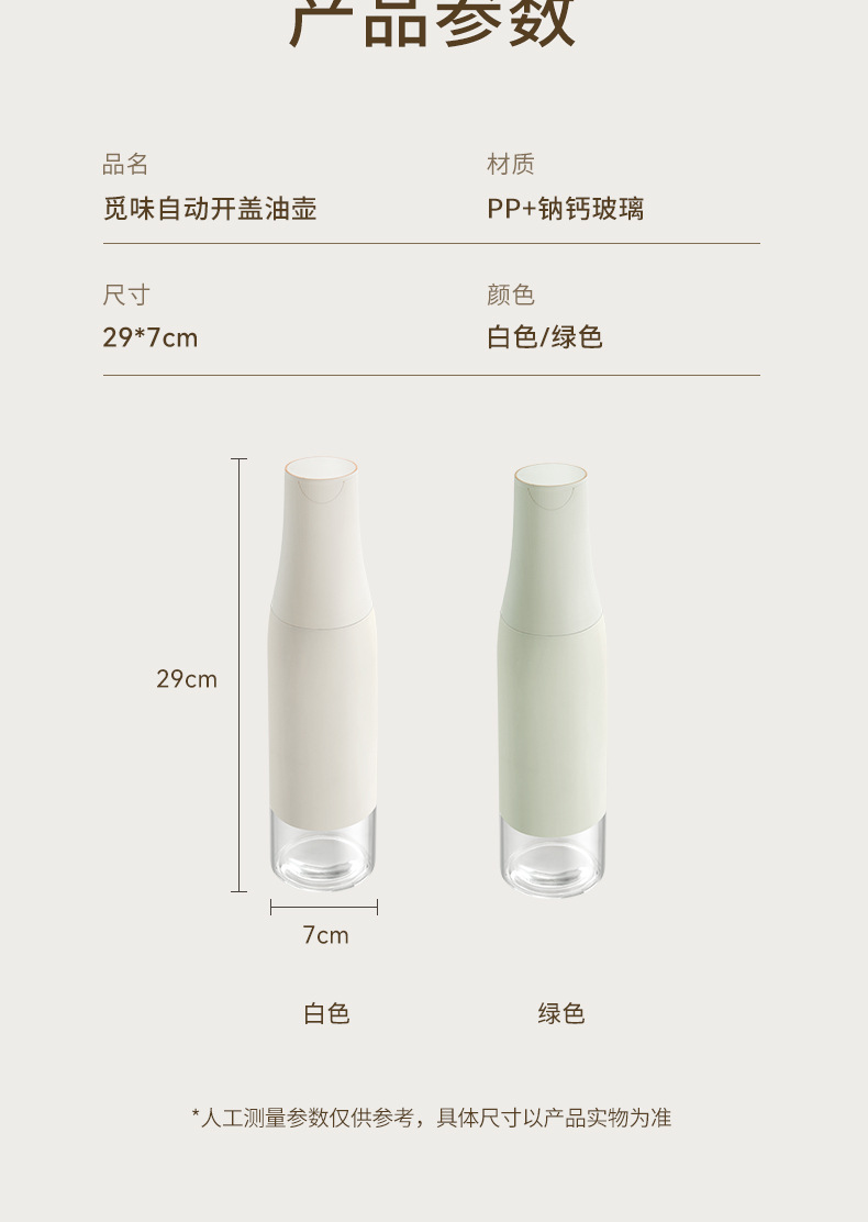 가벼운 고급 가정용 오일 포트 식품 등급 유리 누출 방지 오일 병 주방 자동 개방 및 폐쇄 중력 감지 올리브 오일 포트스토어 가기