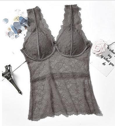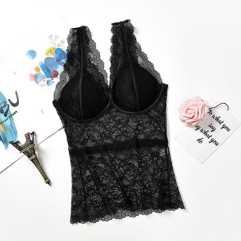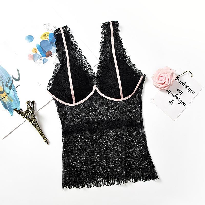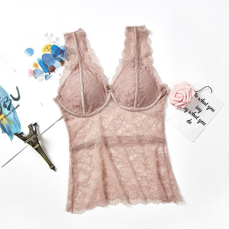 인터넷 연예인 레이스 퀸 V-넥 조끼 긴 플러스 사이즈 모든 일치 섹시 레이스 벨트 가슴 패드 여성스토어 가기
