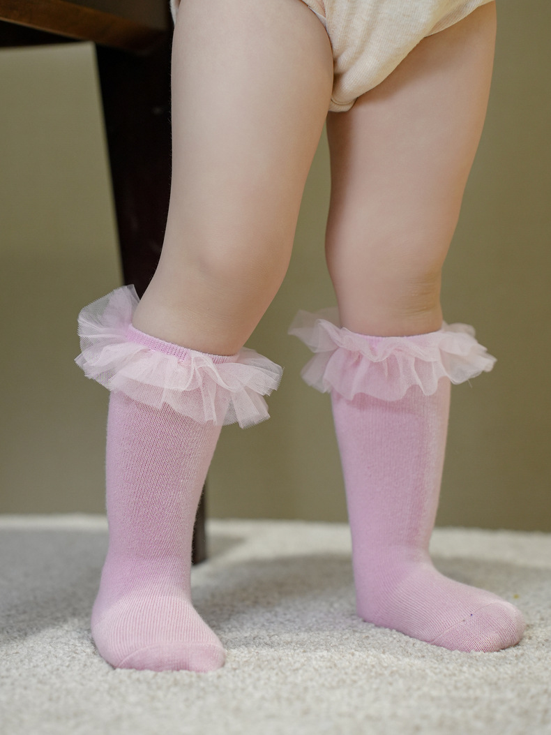 봄 가을 로리타 스타일 유럽 공주풍 중간 길이 망사 레이스 아기 돌잔치 빨간색 여자아이 종아리 양말스토어 가기