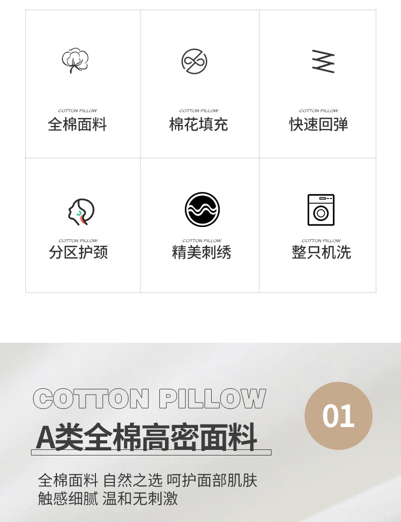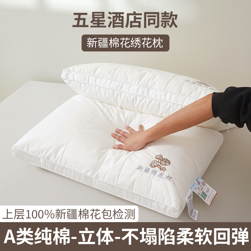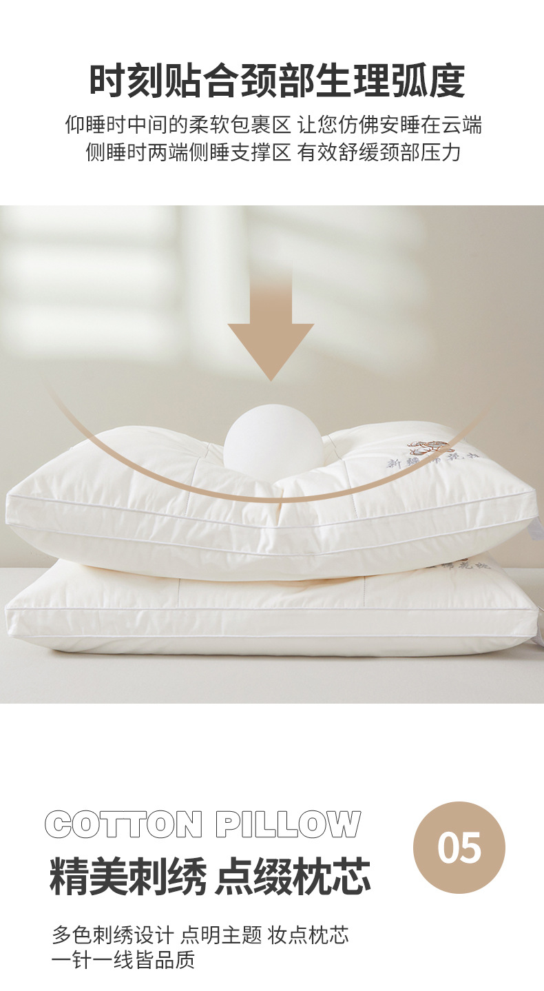 공장 도매급 A급 신장 면 베개 심 면 자수 호텔 입체 싱글 베개 목 베개스토어 가기