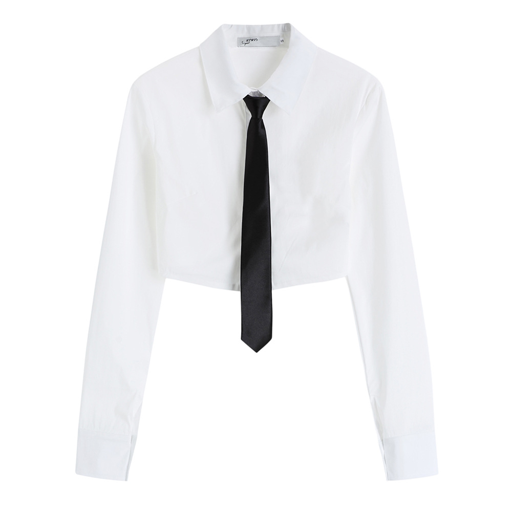 꽉 허리 하이 엔드 디자인 감각 틈새 슬림핏 타이 셔츠 여성용 봄 짧은 탑 퓨어 스파이스 소녀의 흰색 jk 셔츠