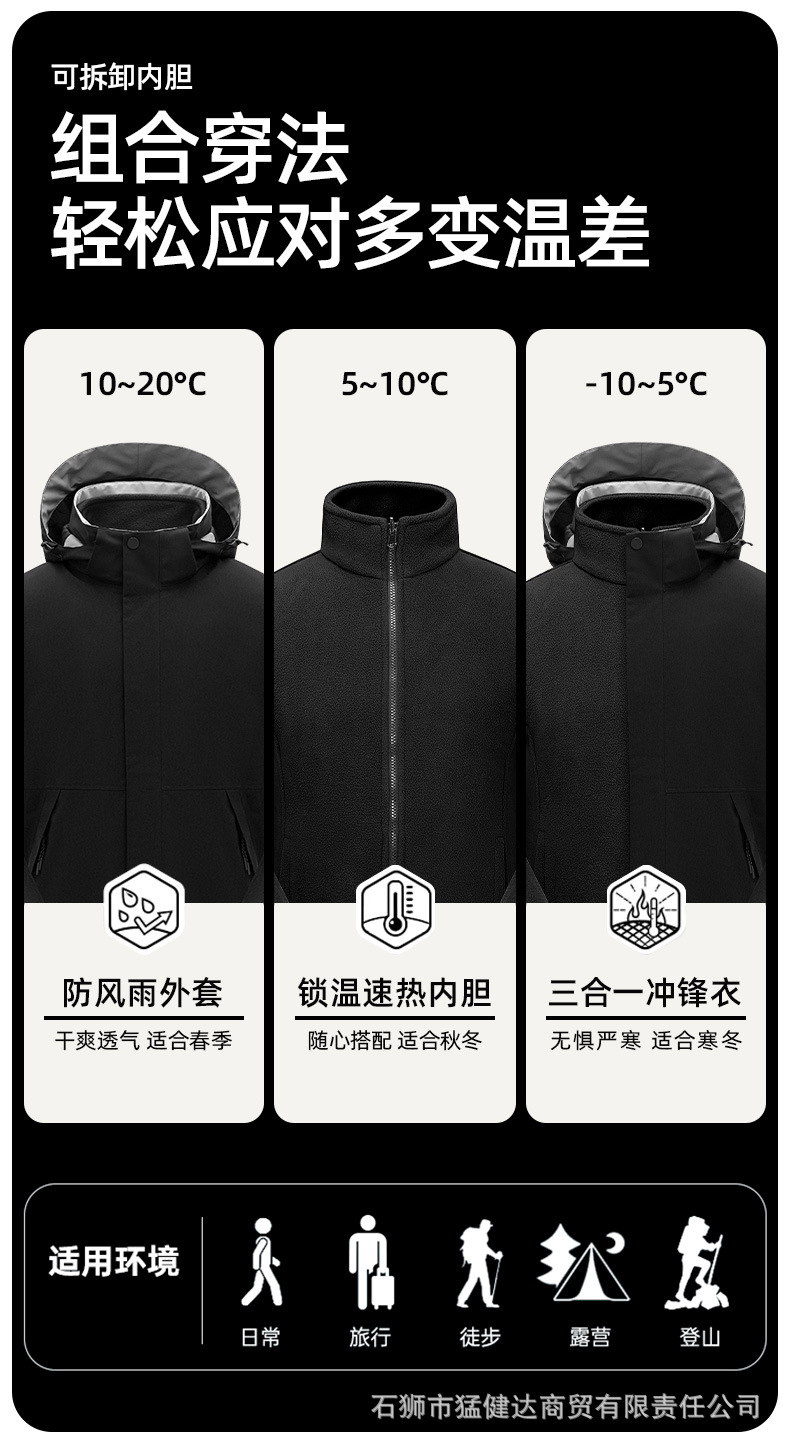 Gautier 폭풍 학년 보호 재킷 남자의 야외 3-in-one 여행 방수 재킷 따뜻한 등산 세트스토어 가기