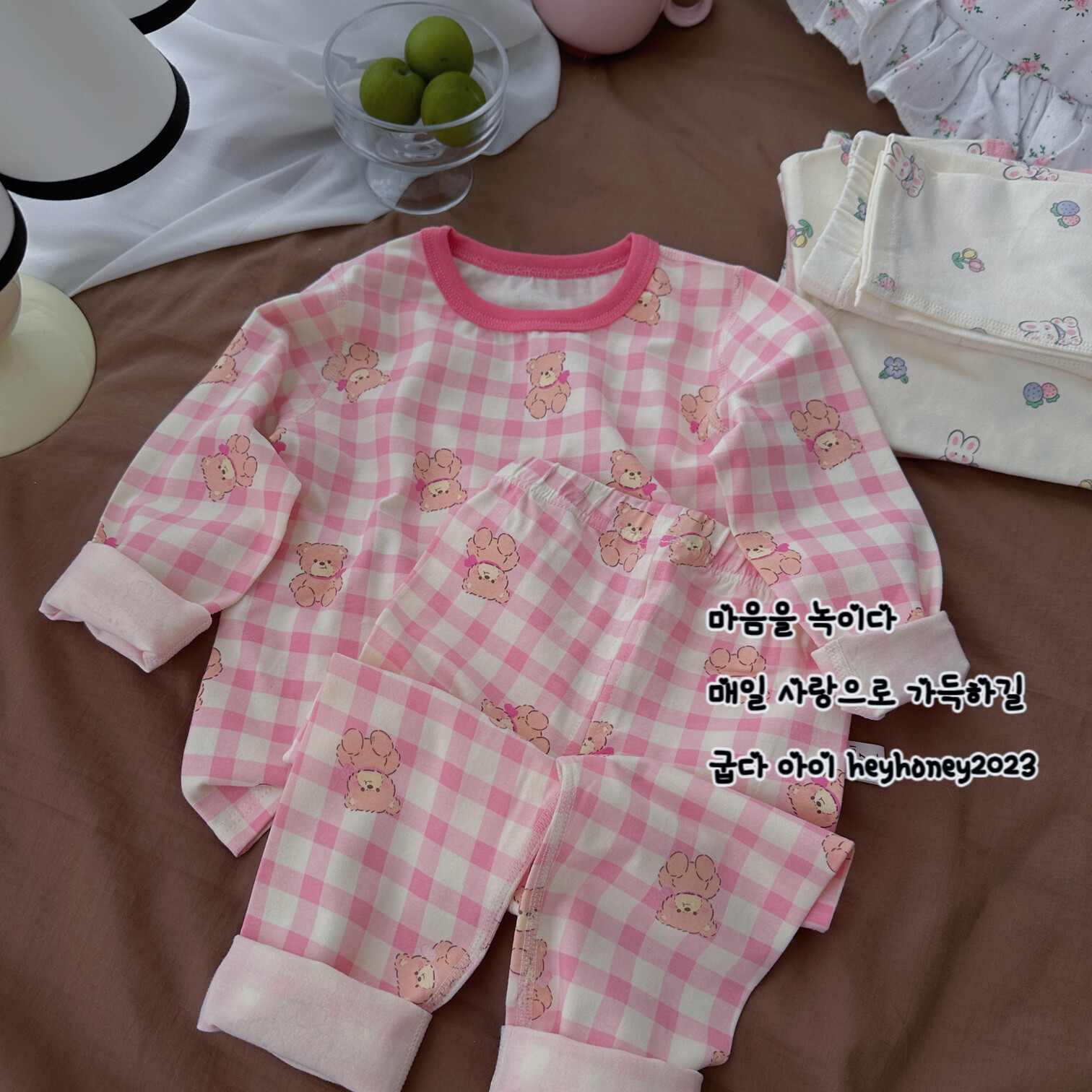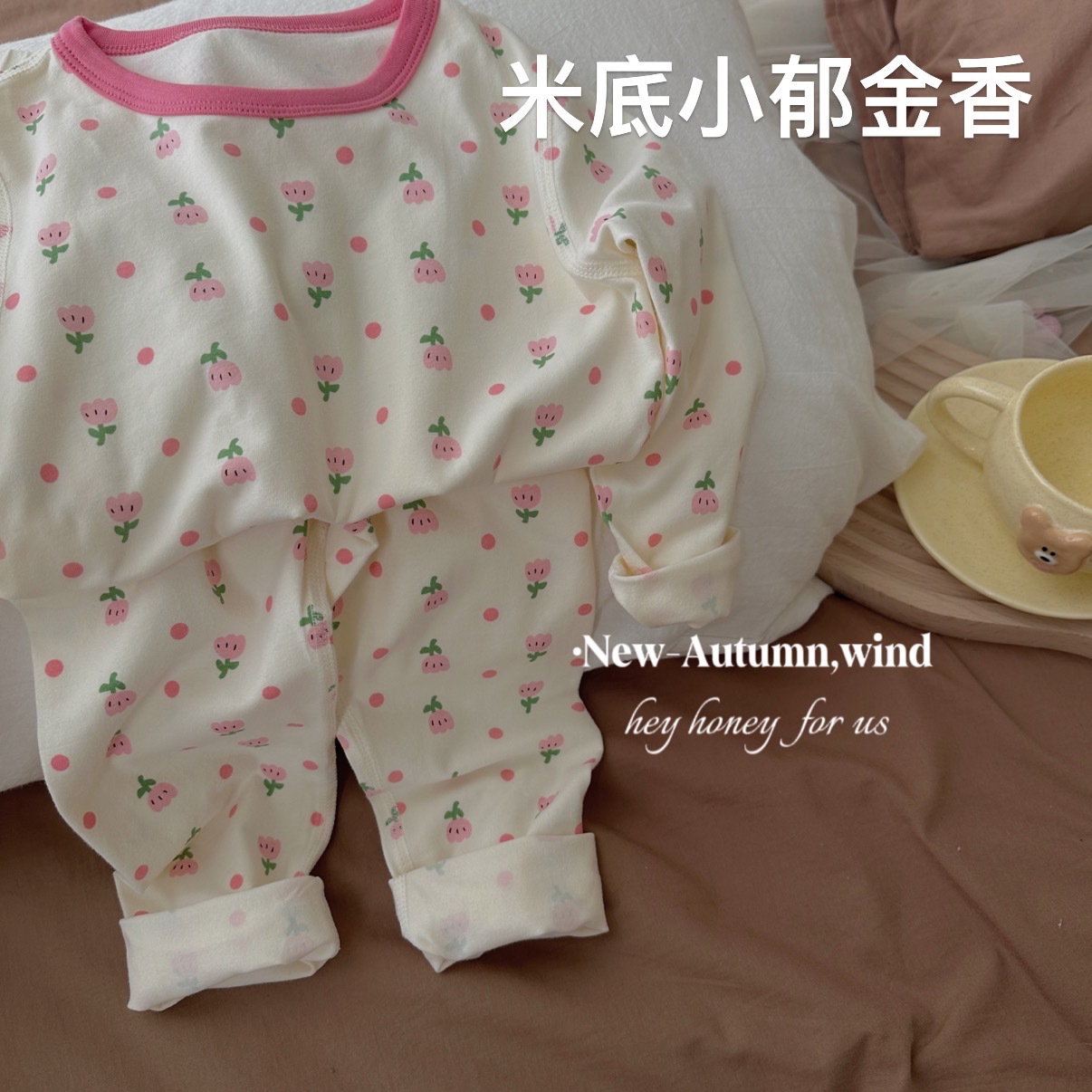 재고 사이즈 롤 여자 긴 소매 가을 의류 기본 속옷 한국 인쇄 홈 의류 파자마 두 조각 세트스토어 가기