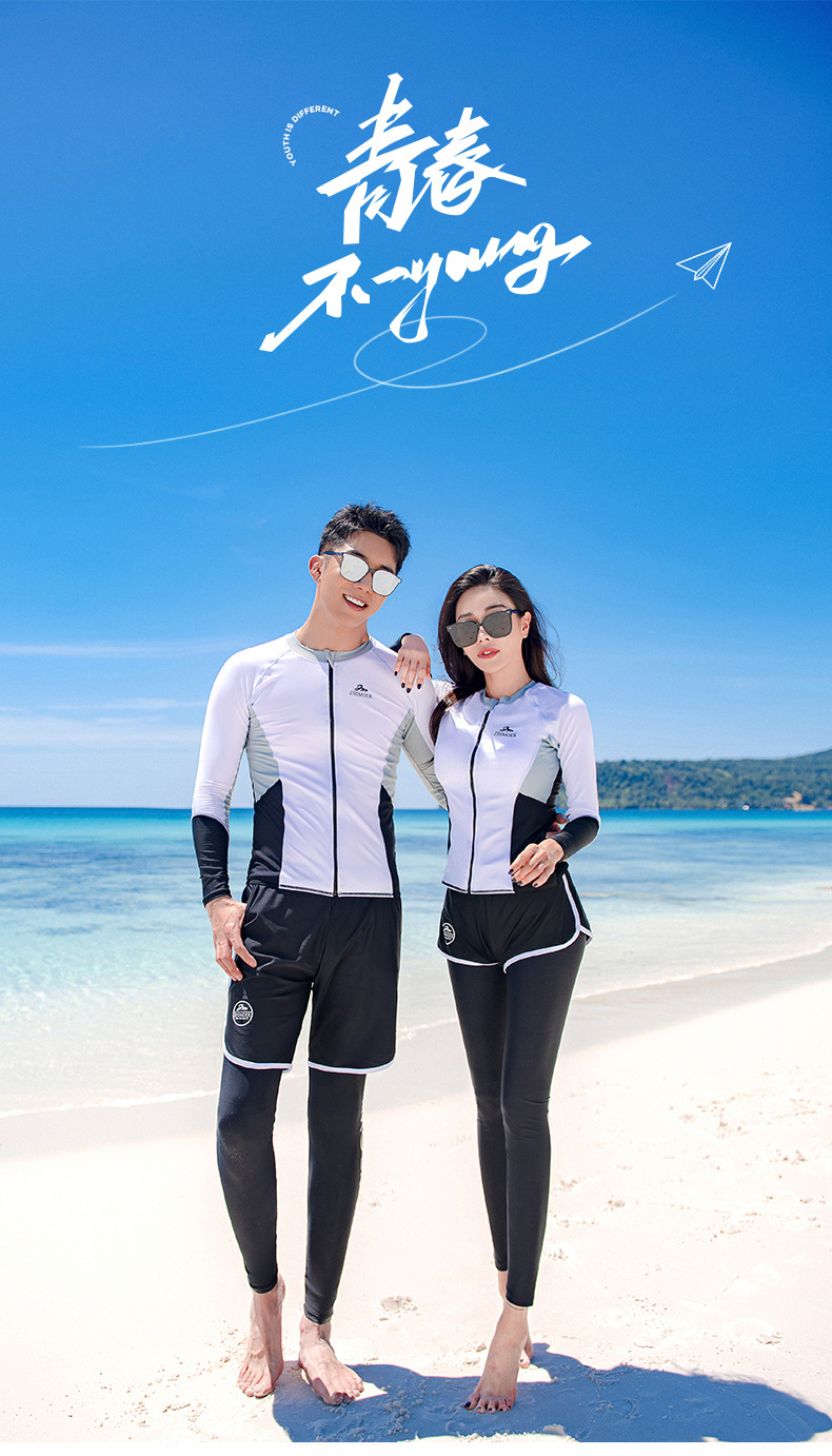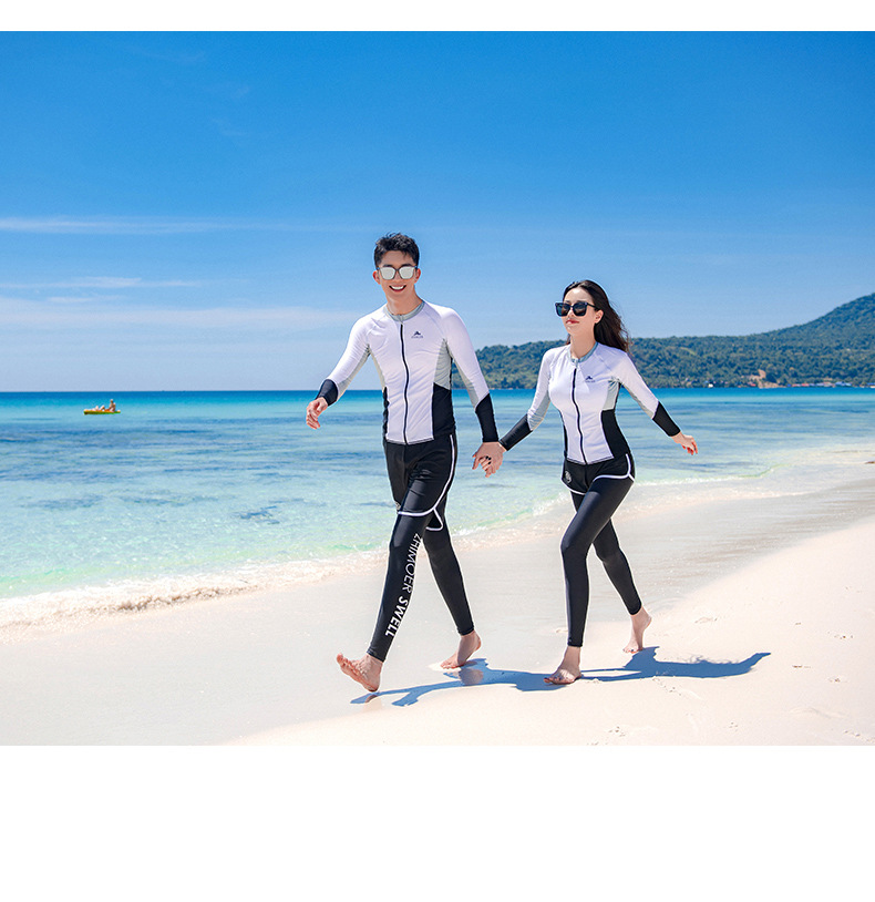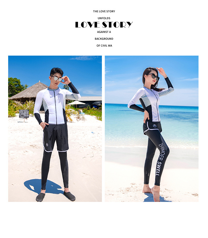 한국 2024 년 여름 새 커플 다이빙 세트 스포츠 긴 소매 수영복 태양 보호 분할 서핑 부모-자녀 수영복스토어 가기