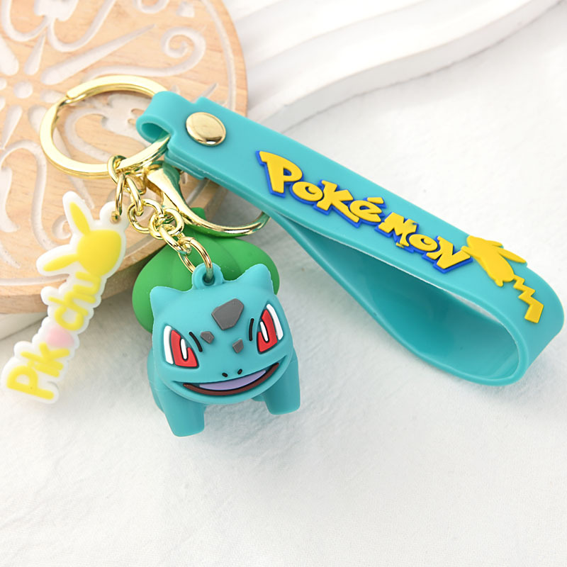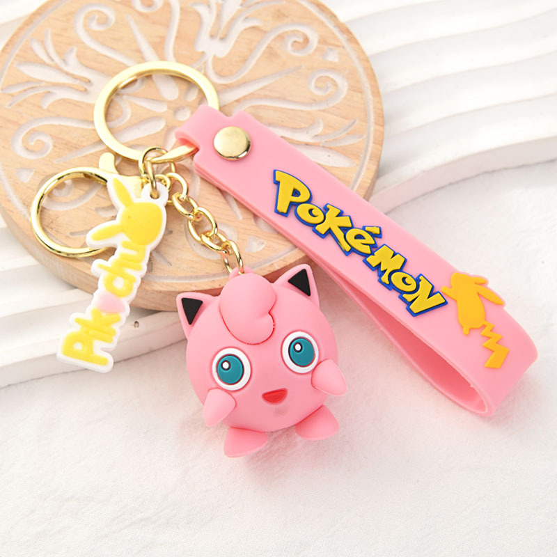 跨境宝可梦钥匙扣卡通二次元可达鸭钥匙扣硅胶可爱皮卡丘挂件公仔