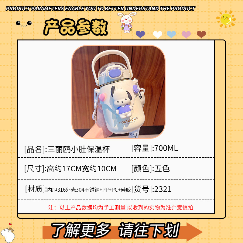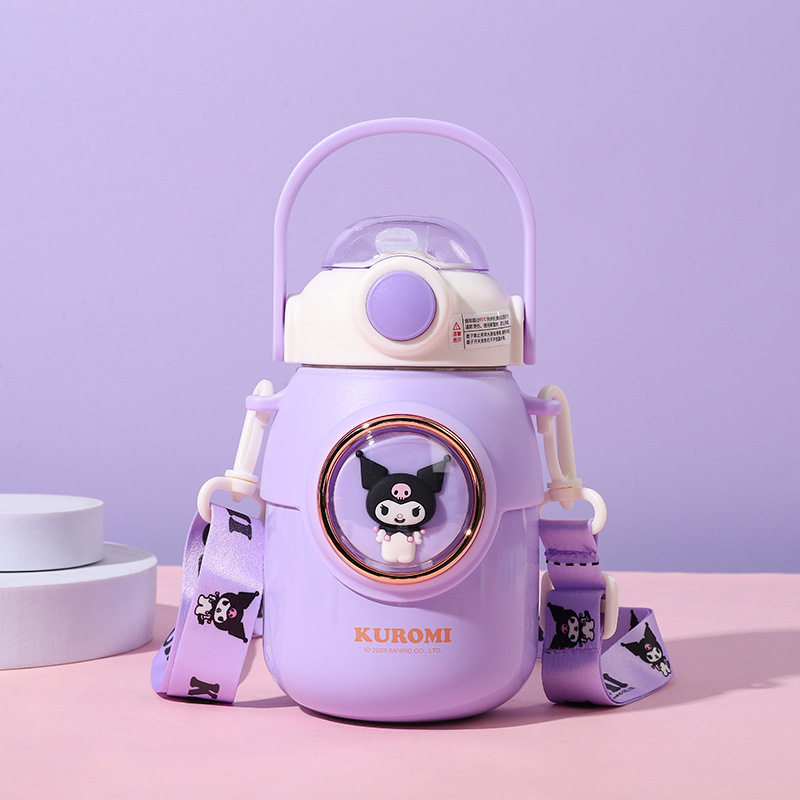산리오 보온병 컵 소녀의 고가의 귀여운 쿨로미 크로스바디 흡입 컵 316 스테인레스 스틸 휴대용 주전자스토어 가기