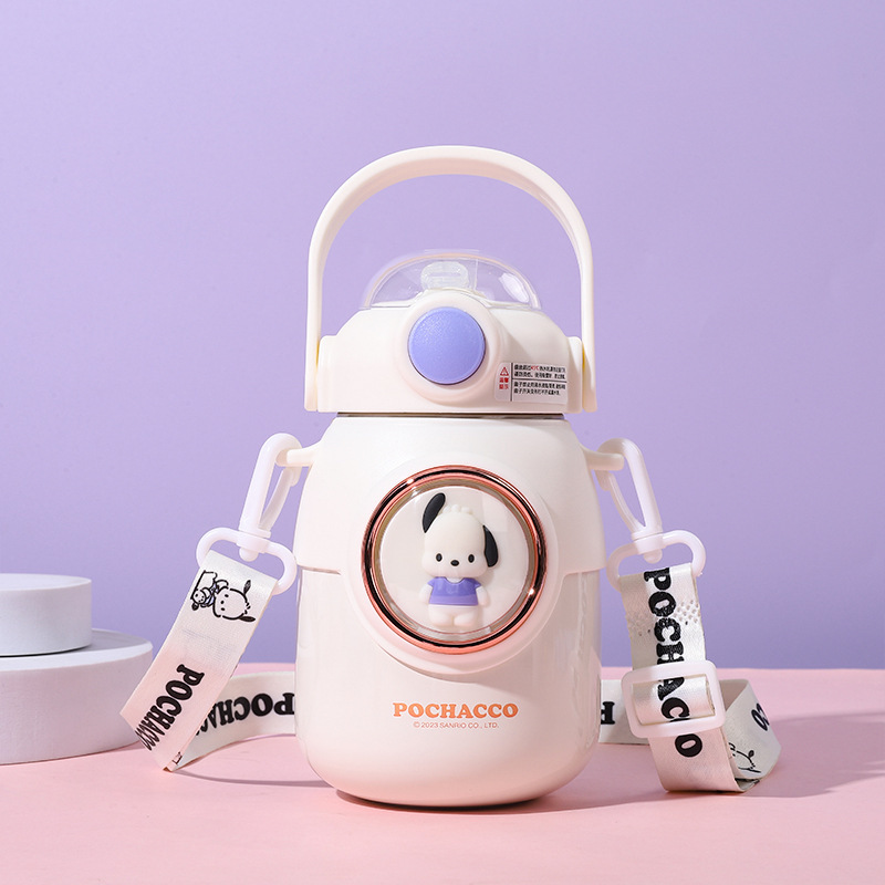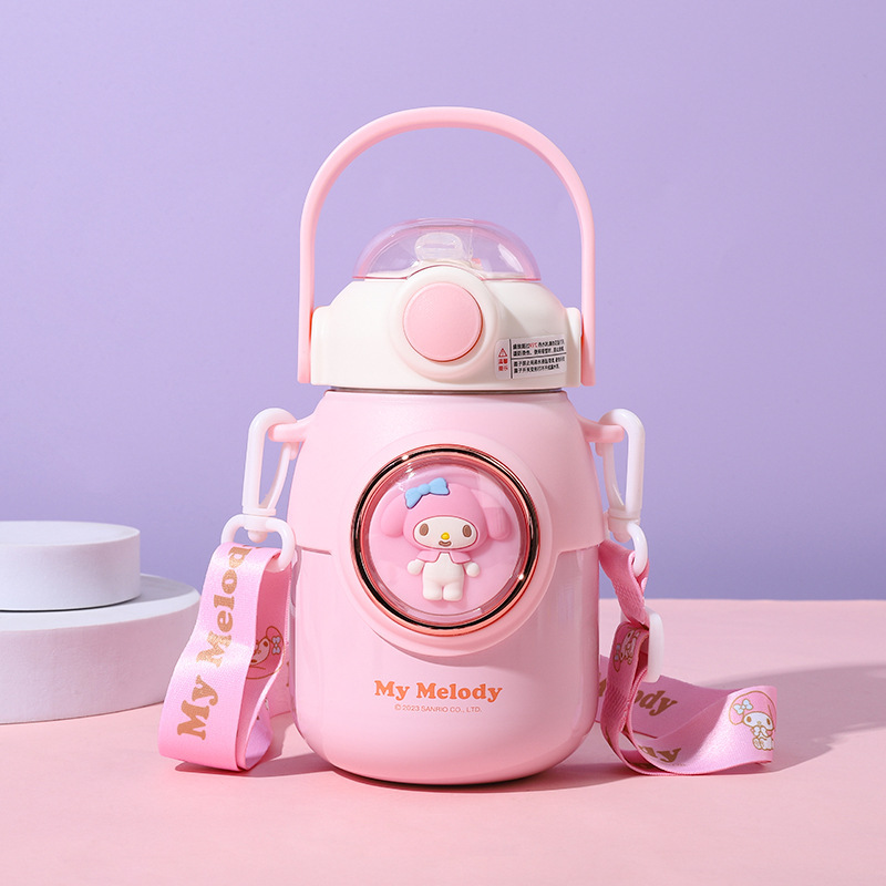 산리오 보온병 컵 소녀의 고가의 귀여운 쿨로미 크로스바디 흡입 컵 316 스테인레스 스틸 휴대용 주전자