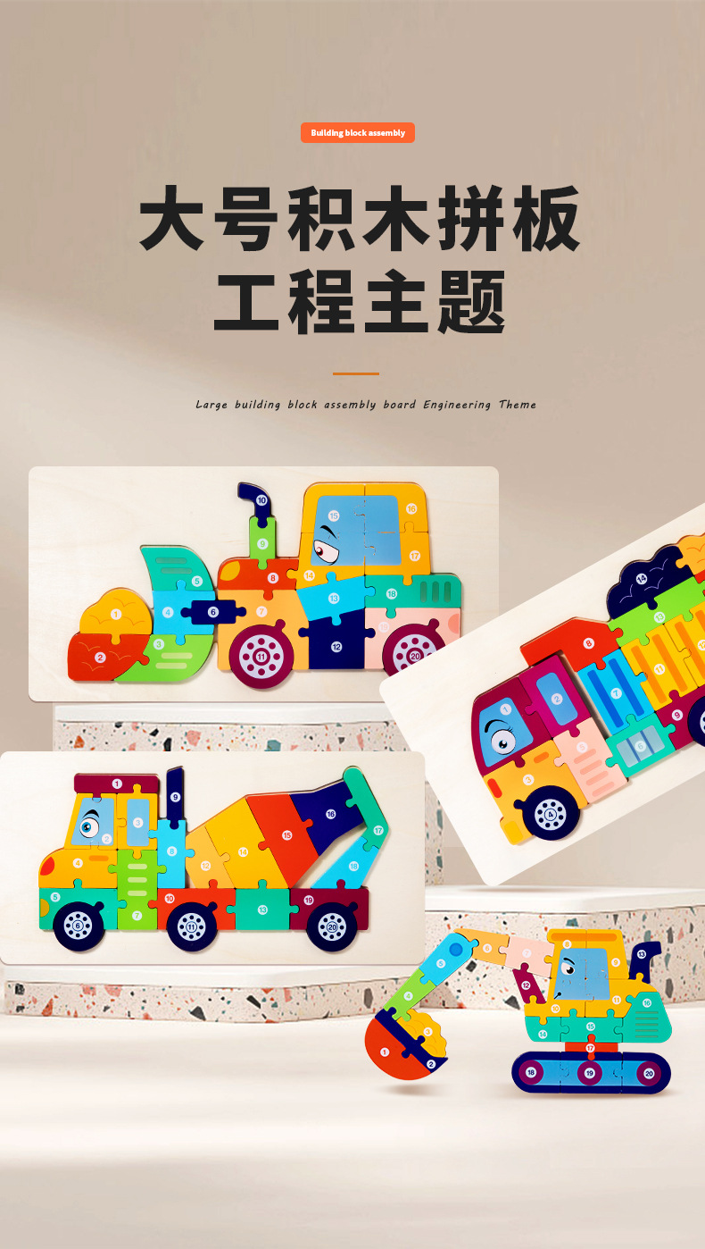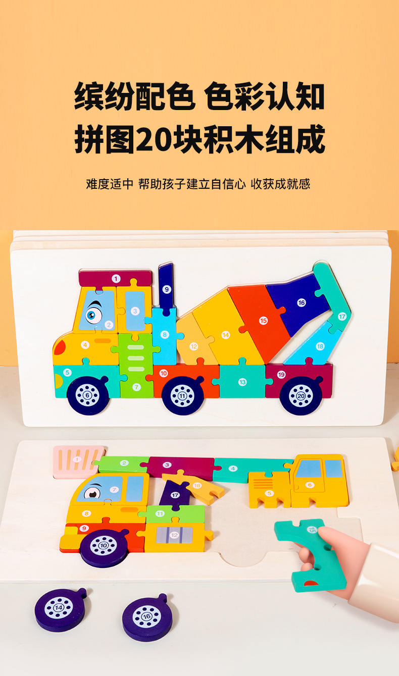 퍼즐 교통수단 소방차 남자아이 퍼즐 블록 장난감 2-3-4세 소방차 퍼즐