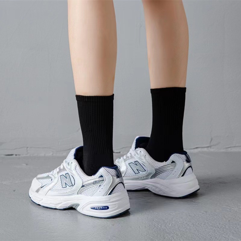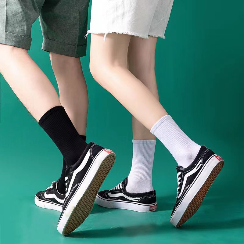 여성용 가을 겨울 중목 양말, 단색 스타킹, 스포츠 캐주얼 흑백 롱 양말, 통기성, 속건성, 캐주얼하고 다용도스토어 가기