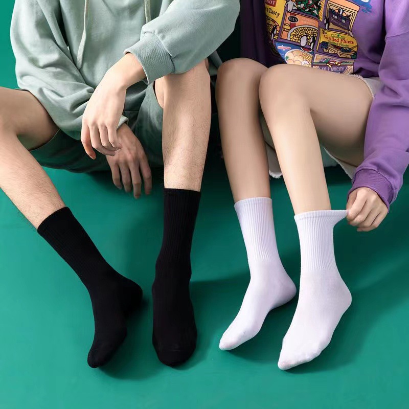 여성용 가을 겨울 중목 양말, 단색 스타킹, 스포츠 캐주얼 흑백 롱 양말, 통기성, 속건성, 캐주얼하고 다용도