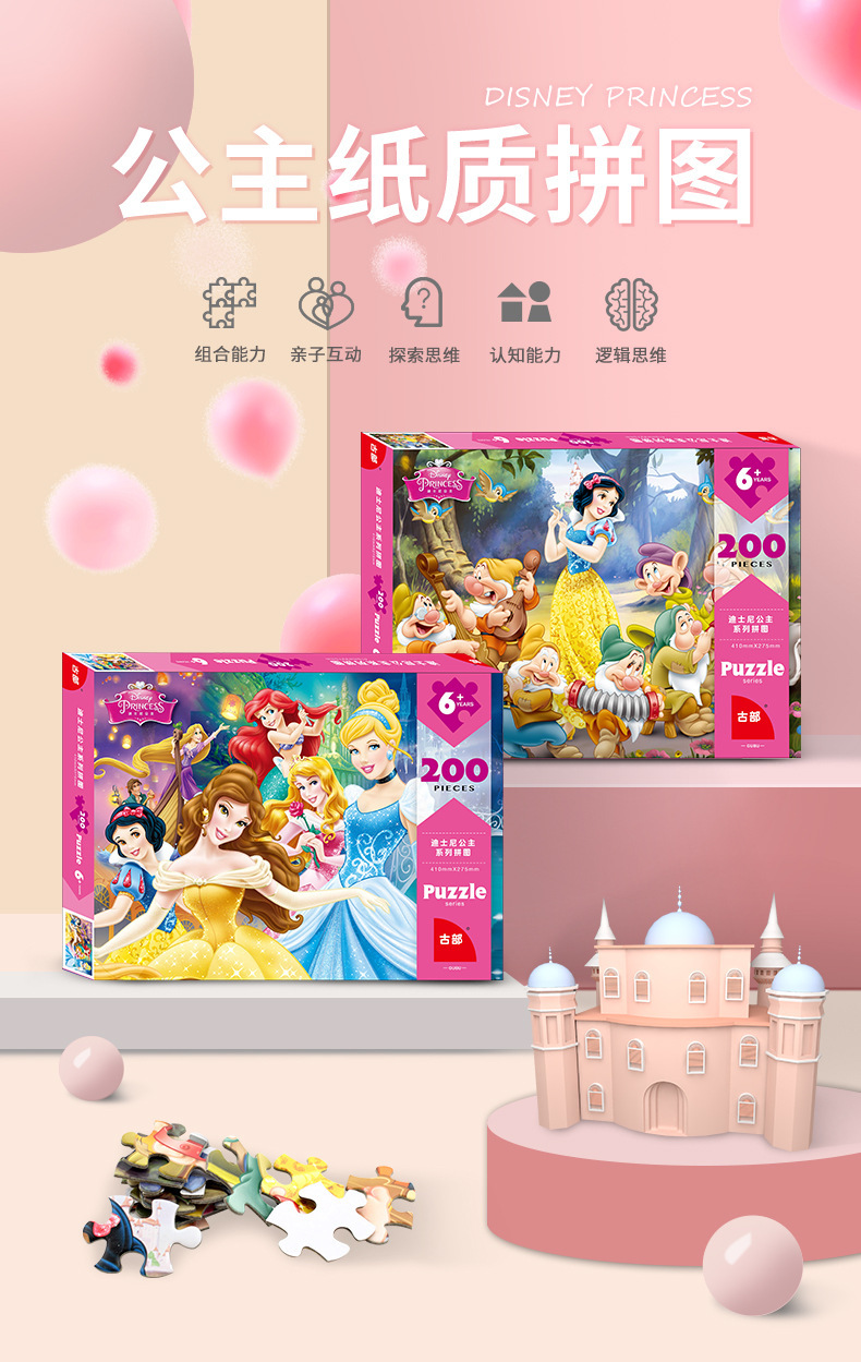 디즈니 200피스 어린이 퍼즐 6-9세부터 14세까지 겨울왕국 공주 퍼즐 어린이 교육용 퍼즐 장난감