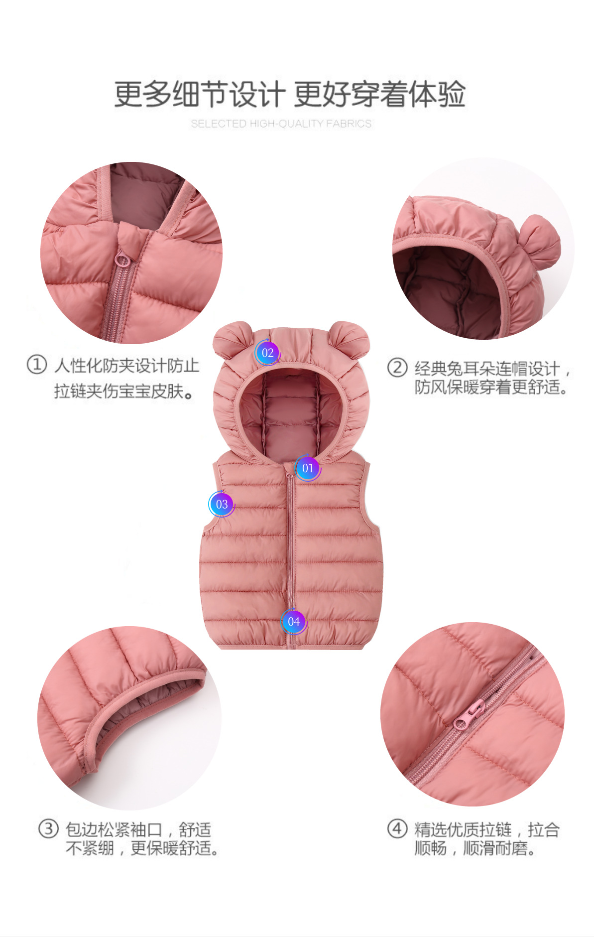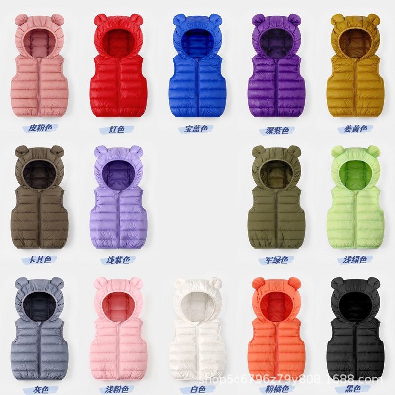 소년과 소녀를위한 새로운 어린이 봄 가을 겨울 후드 단색 다운 면 조끼 아기 사탕 귀여운 경량 조끼 따뜻한스토어 가기